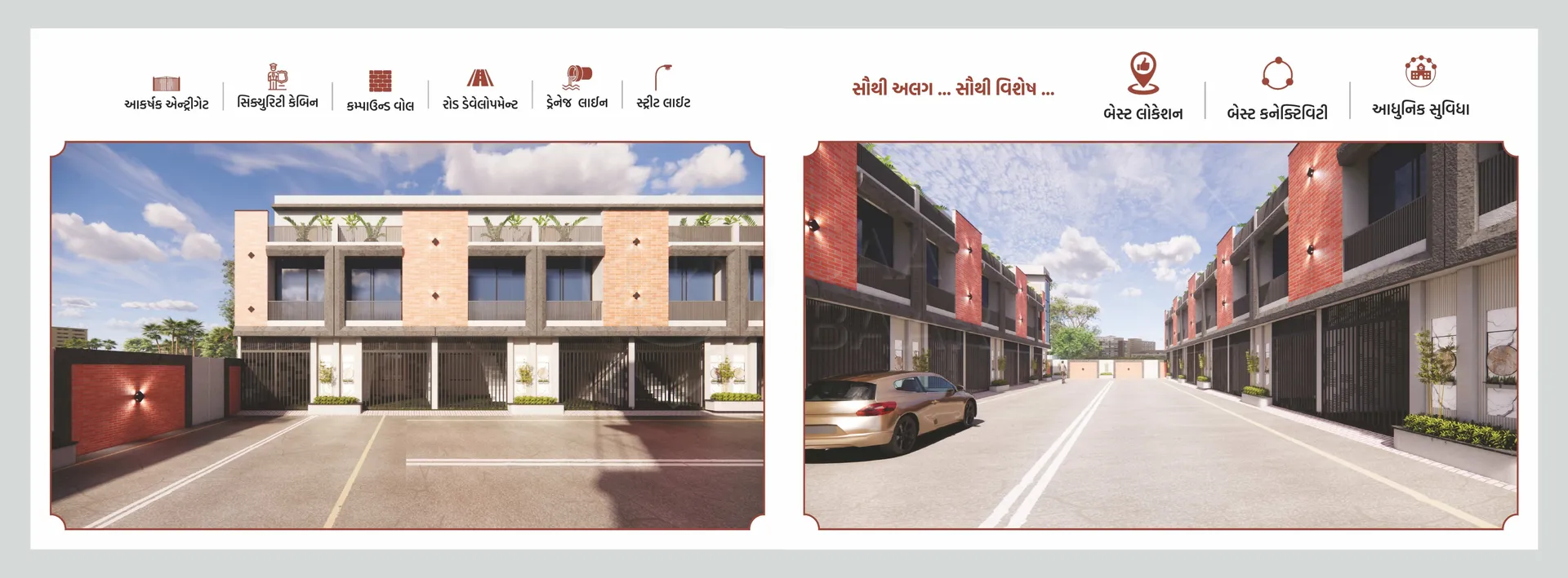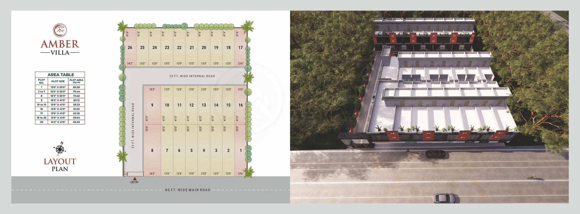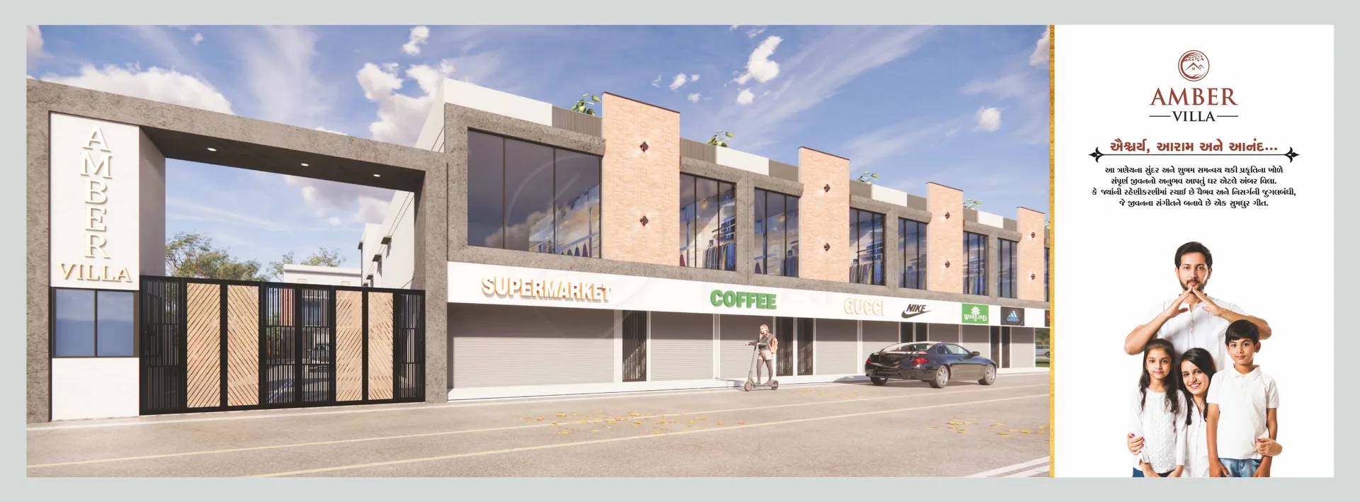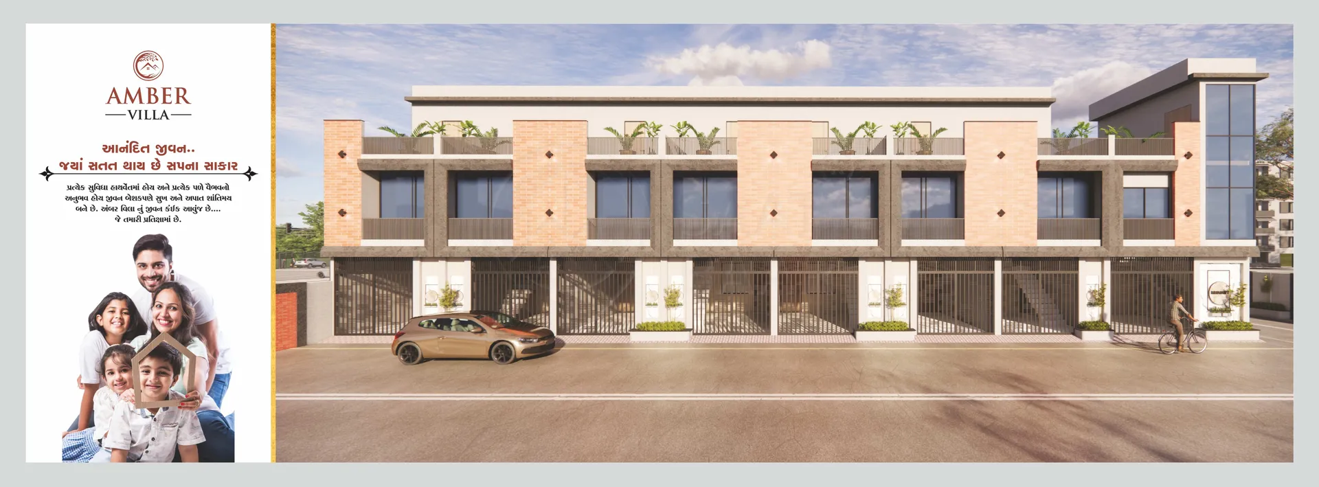 Amber Villa, located in Laskana, Kholvad, Surat, offers a perfect blend of modern living and convenience. The gated community boasts amenities like a compound wall, security cabin, and an elegant entry gate, ensuring a safe and welcoming environment. With well-planned RCC roads and drainage systems, the development focuses on infrastructure. The homes come with dedicated parking spaces and open terraces, providing a spacious and comfortable living experience for families.