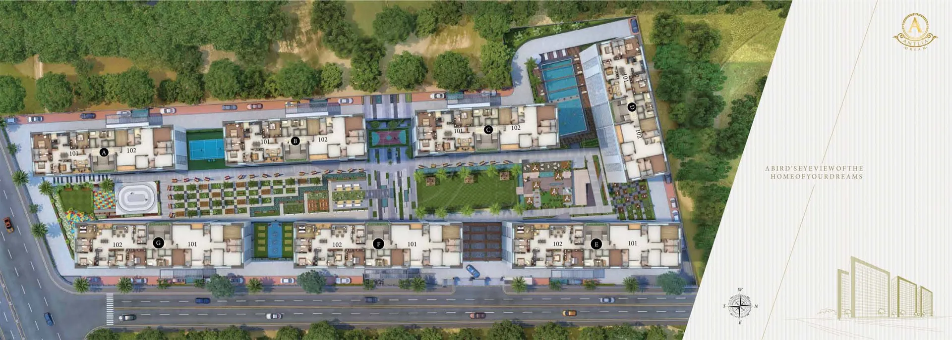 Antlia Dream Vesu housing society has 7 towers with 17 floors.