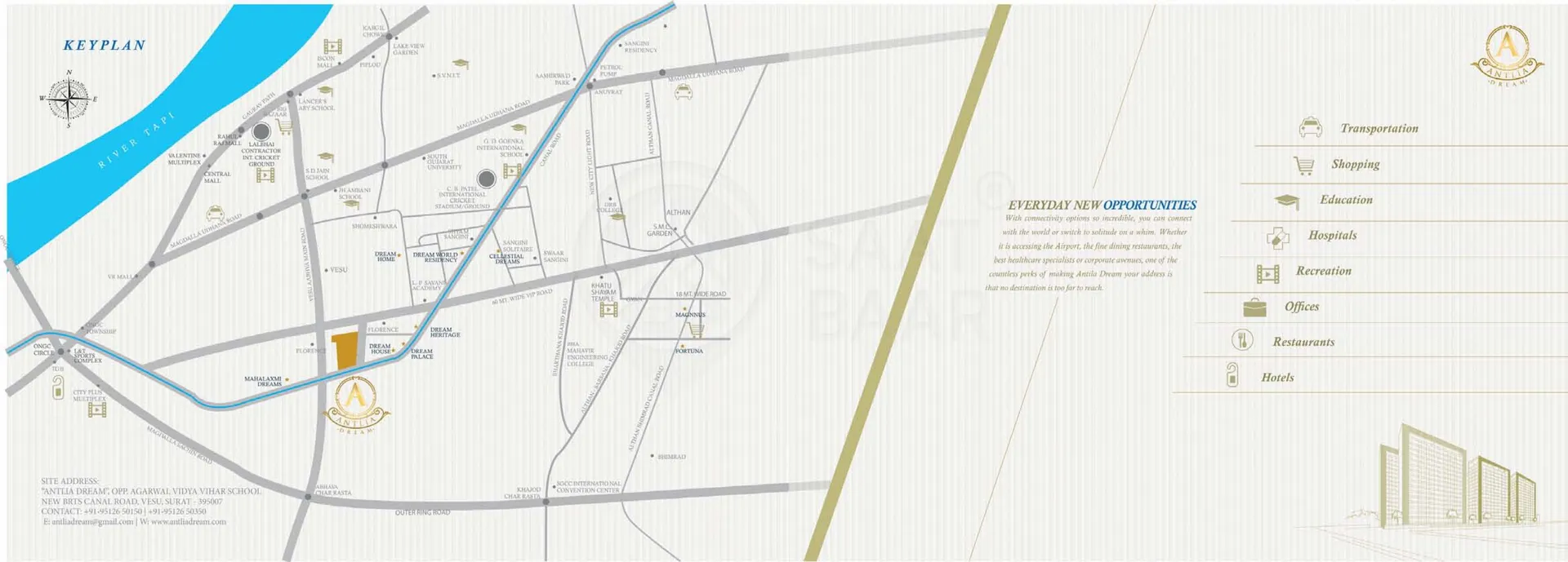 Check out Antlia Dream in Vesu, one of the upcoming under-construction housing societies in Surat. There are apartments for sale in Antlia Dream Vesu, Surat. This society will have all basic facilities and amenities to suit homebuyer’s needs and requirements.