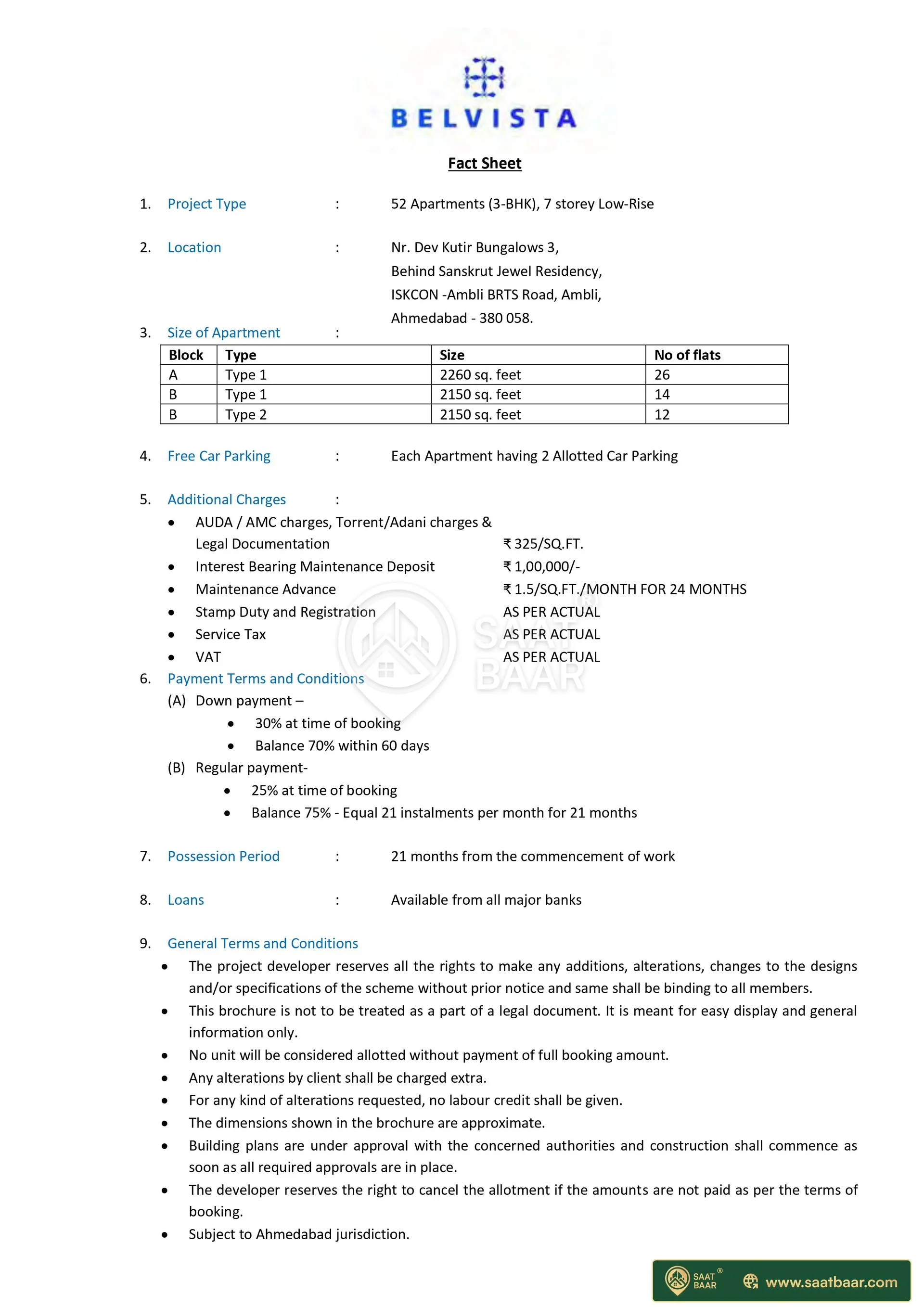 Arista Belvista in Ambli, Ahmedabad West is a ready-to-move housing society. This project is a perfect combination of comfort and style, specifically designed to suit your requirements and conveniences. This housing society is now ready to be called home as families have started moving in.