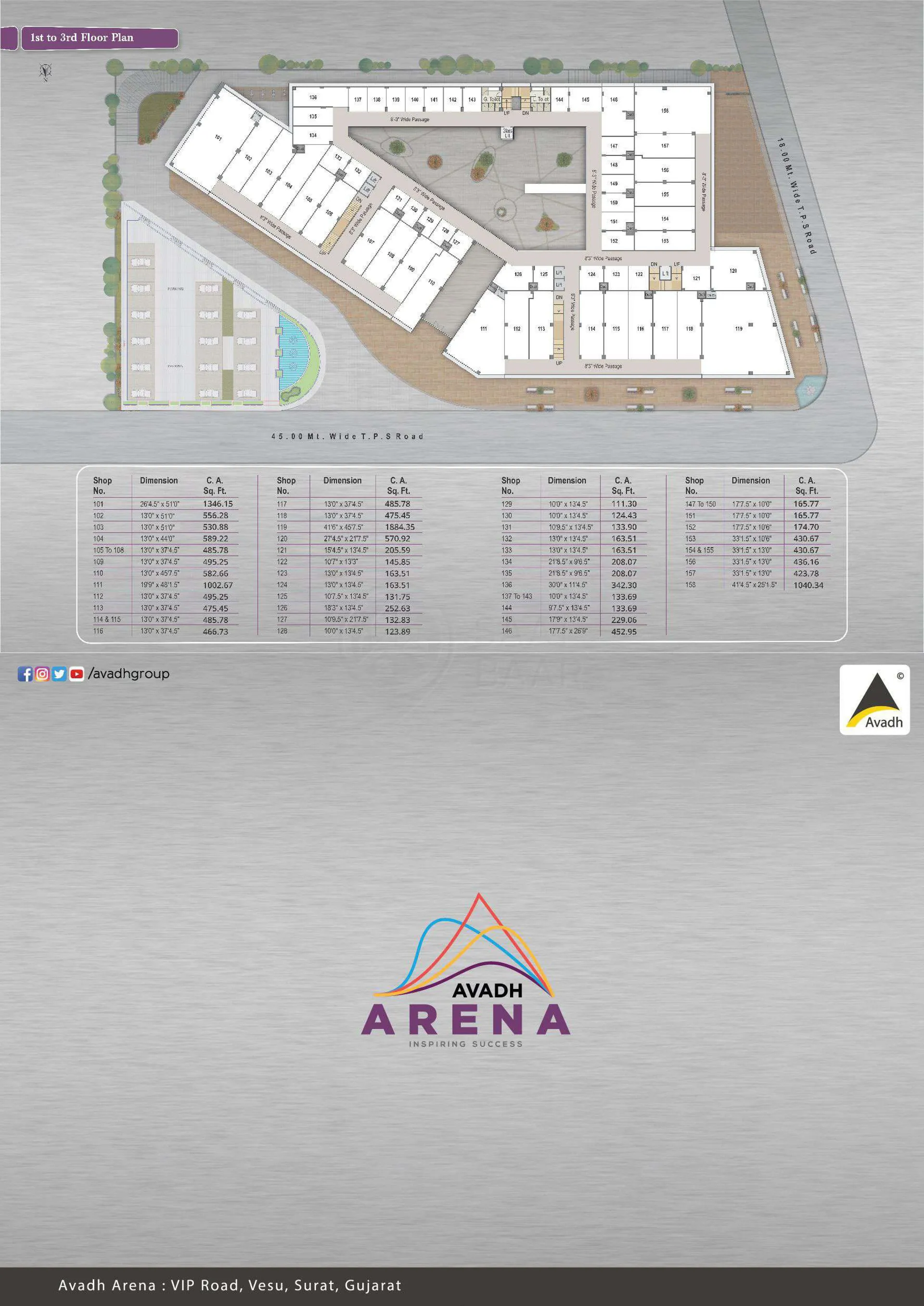 Avadh Arena is the newest premium shopping hub of surat, brought to you by the veteran Avadh Group which is defining the real estate landscape of the city. This prestigious venture converges in one place, the best stores, showrooms, shops, offices and multiple commercial spaces at 150 VIP Road, near Vesu, the prime upcoming landmark of Surat.