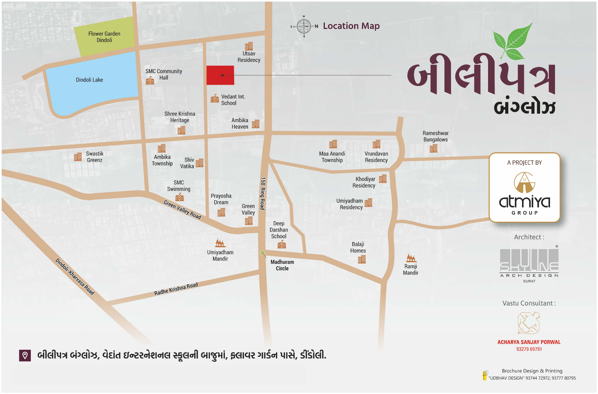 Located near Vedant International School, close to Green Valley Road & Dindoli Lake. Nearby landmarks include: