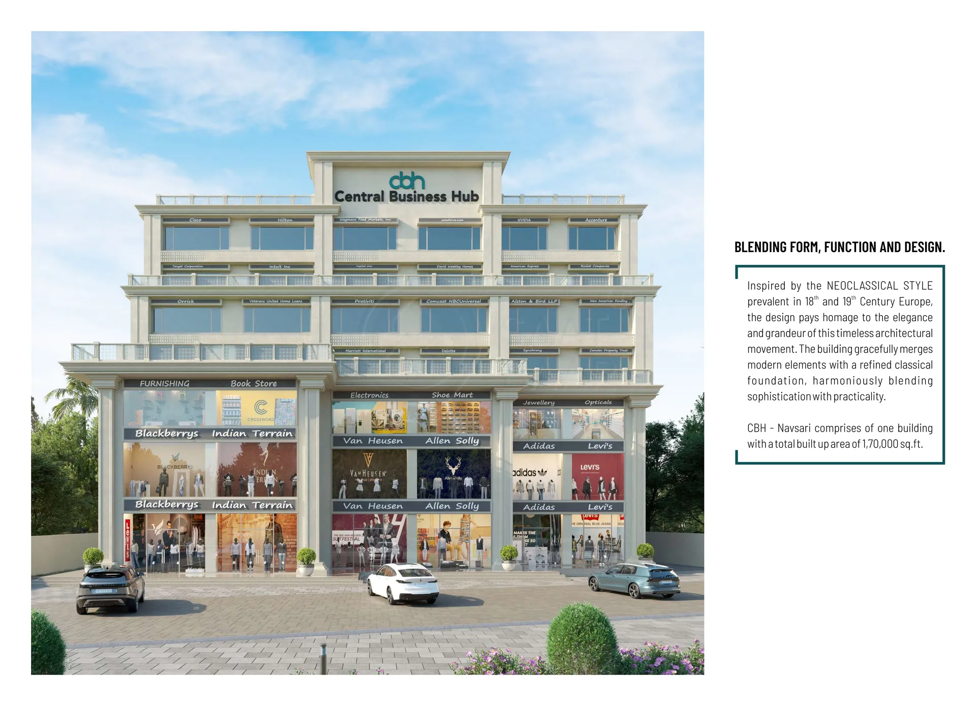 In our recent rendezvous with innovation and architectural excellence, Synergy Group in partnership with Swami Group, is delighted to present to you the grand launch of Central Business Hub, Navsari. Inspired by the Art-Deco architecture of early 20th Century Chicago and New York, the design harkens back to the ritz and glitz of the Roaring Twenties. The complex is comprised of retail on G+2 levels, and 7 floors of office space. The total area is 1,75,000 sq. ft. and work is expected to complete in 2025.