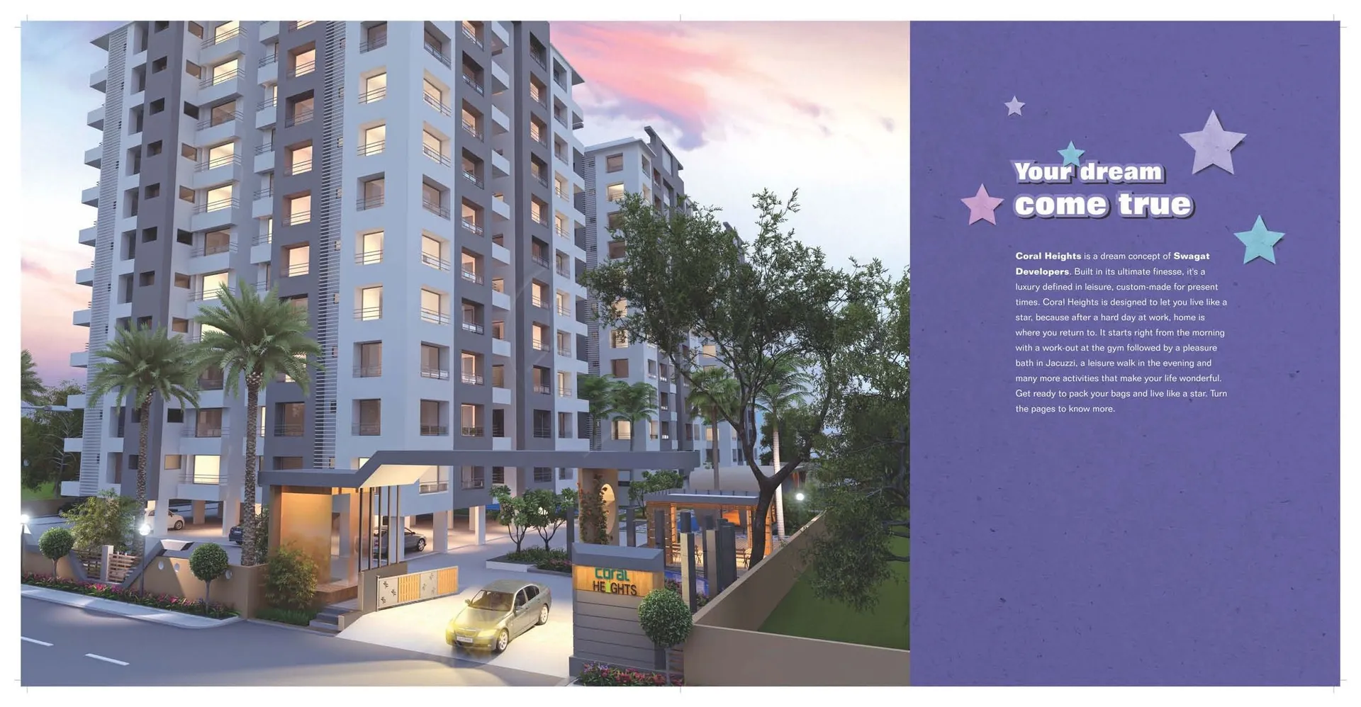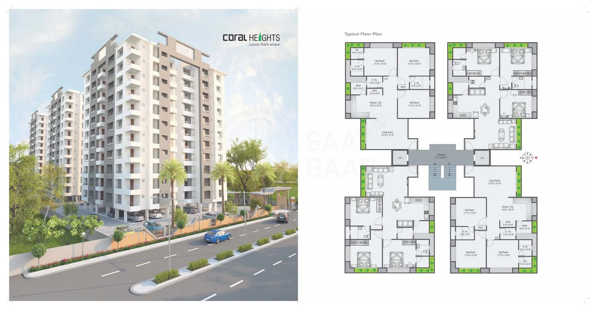 Presenting, Coral Heights - an address that is an oasis of calm, peace and magnificence in the hustle-bustle of the city, Surat. Your home will now serve as a perfect getaway after a tiring day at work, as Coral Heights ambiance will make you forget that you are in the heart of the city, Canal Road. Coral Heights comprises of 3 BHK Apartments in Surat. Coral Heights brings a lifestyle that befits Royalty with the batch of magnificent Apartments at Canal Road. These Residential Apartments in Surat offers limited edition luxury boutique houses that amazingly escapes the noise of the city center. Coral Heights is built by a renowned builder at Canal Road, Surat. The floor plan of Coral Heights presents the most exciting and dynamic floor plans designed for a lavish lifestyle with 10 floors. The master plan of Coral Heights offers people a strong connection to their surroundings, promoting a sense of community whilst balancing this with a distinct private address for individual homeowners.