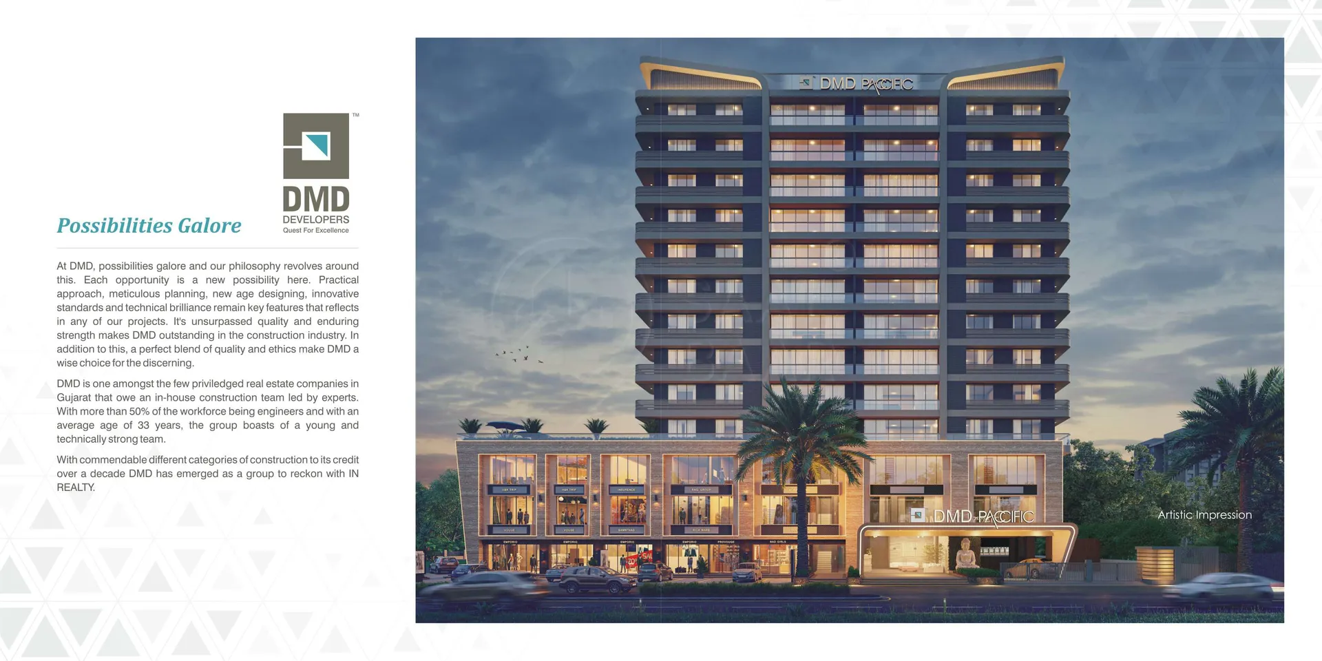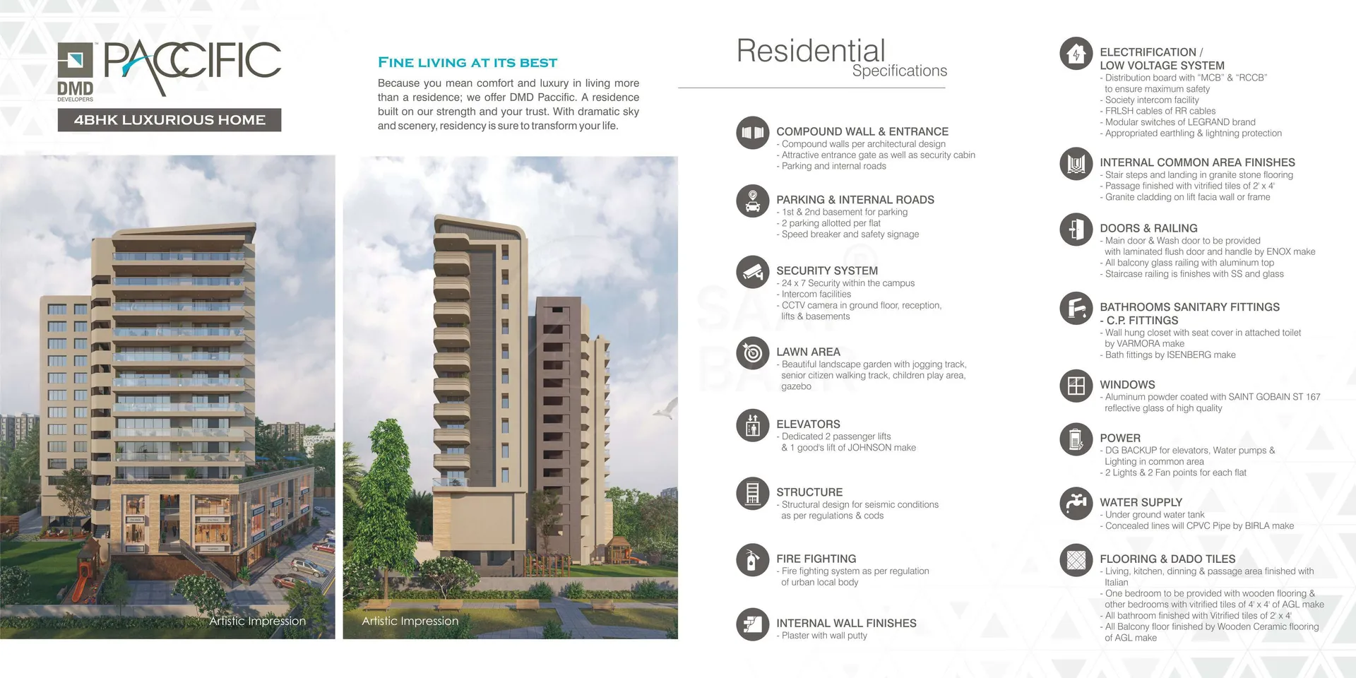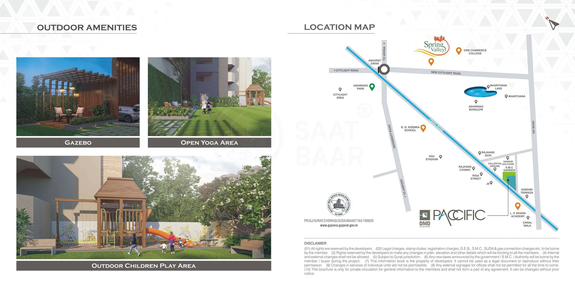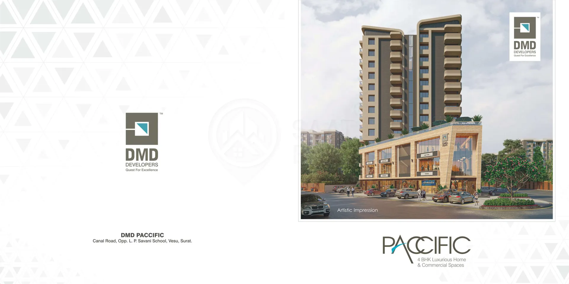 Luxurious housing project Paccific is launched by well-known real estate developer DMD, it is located in Vesu, Surat. The project will be developed on an area of 0.71 acres and is offering beautiful, elegant and comfortable 4 BHK apartments exclusively. Carpet area of 4 BHK apartments is in the range of 1978 to 1982 sq ft. All the amenities which provide comfort of living will be available in the housing. Developer DMD can be contacted for owning an apartment in Paccific. Vesu is a popular area in Surat. Many reputed schools, educational institutes, and hospitals are established here. Restaurants, banks, and other utility shops are also located in the vicinity.