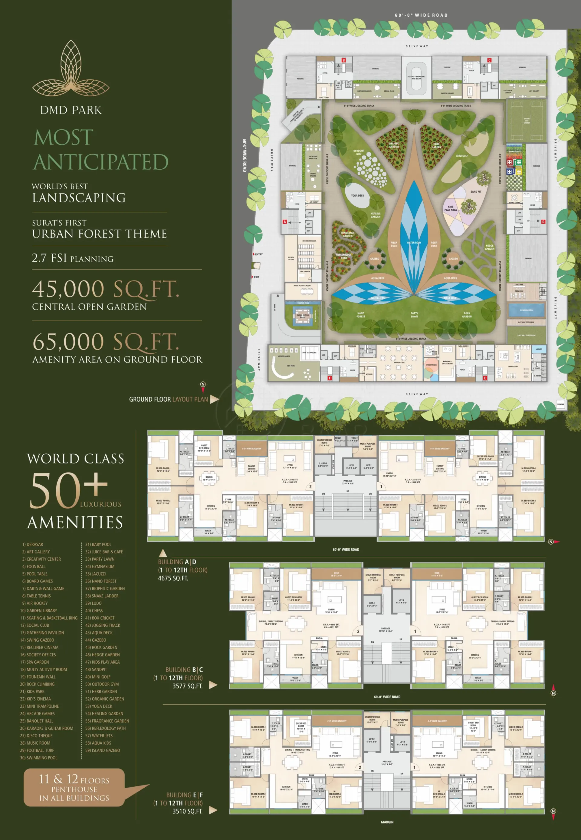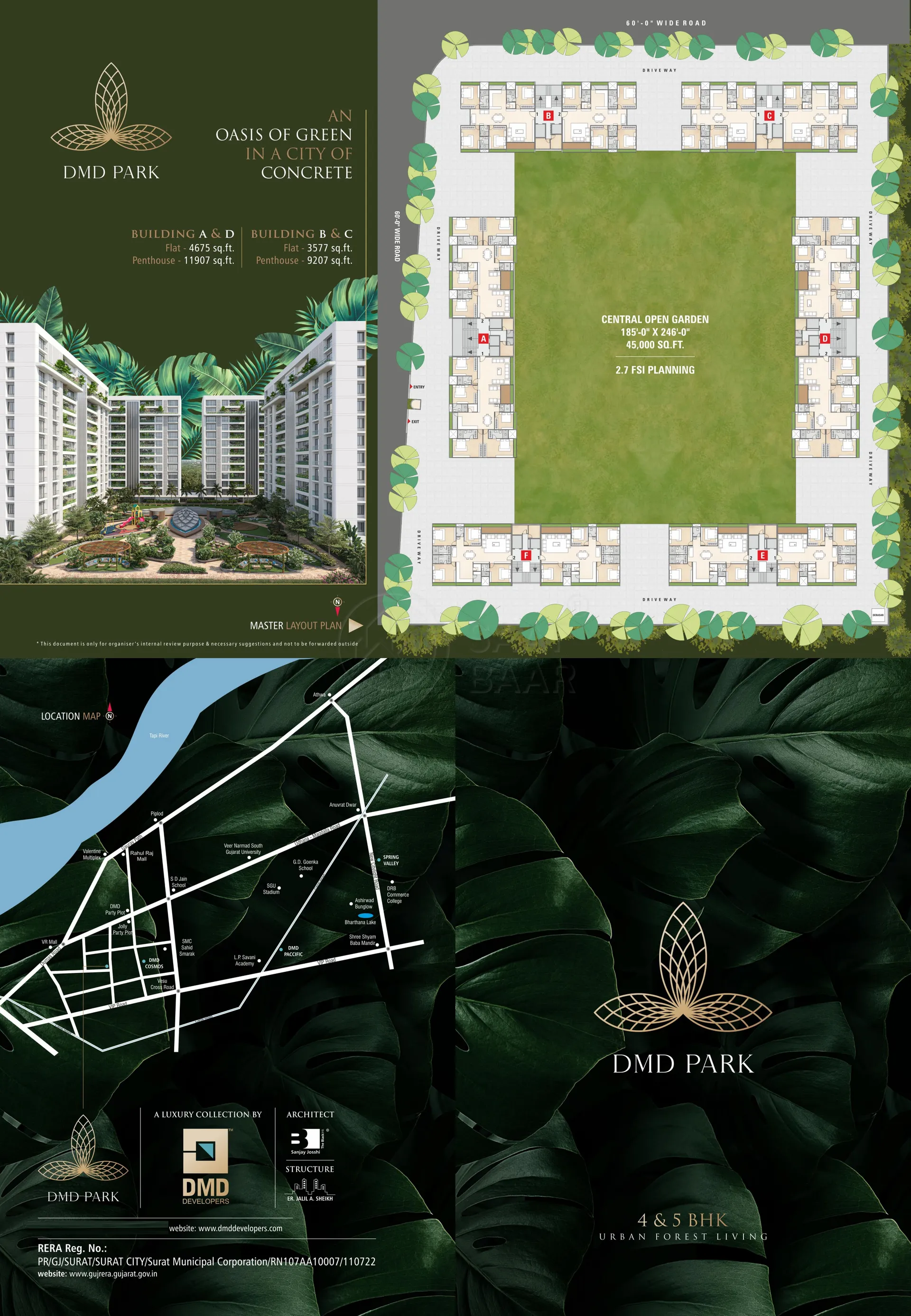 Surat's residential project, DMD Park is offering property for sale. Check out some Apartment. Available configurations include 3 BHK, 4 BHK formats in Vesu. It is a Under Construction project by DMD Developers. DMD Park is set in an area of 2.71 Acres and is complete with various modern-day amenities. As per the area plan, units are in the size range of 1189.0 - 1700.0 sq.ft..