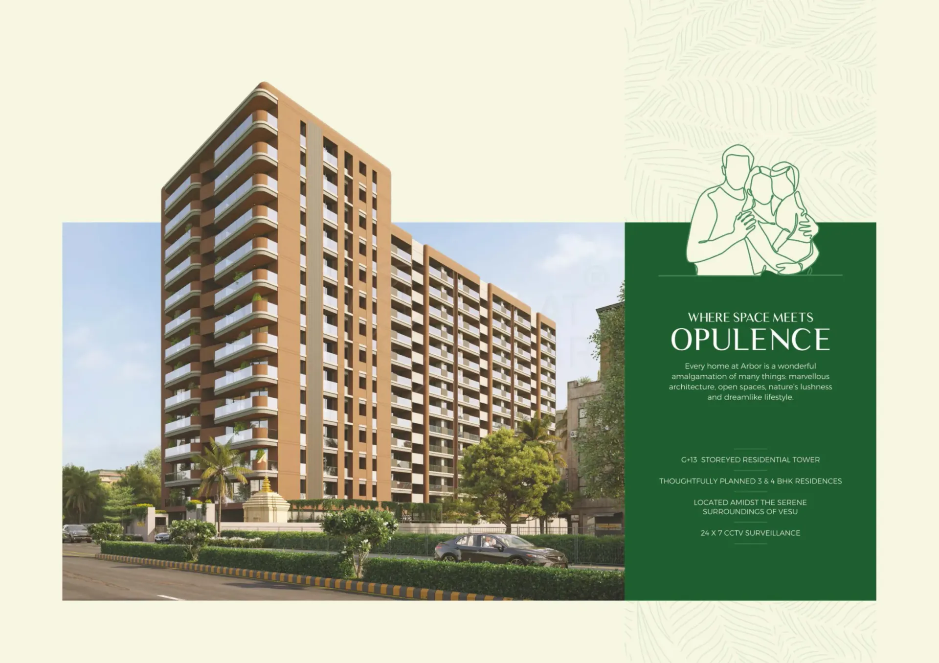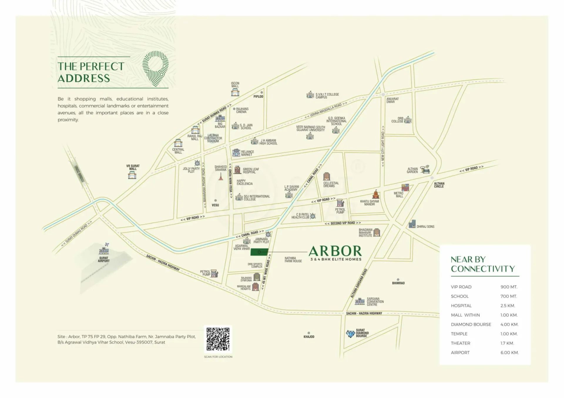 Situated in the peaceful Vesu area, Infinity Arbor is strategically located for both convenience and connectivity. Proximity to schools, temples, hospitals, shopping centers, and workplaces ensures that residents have easy access to essential services. This combination of modern amenities, spacious apartments, and a well-connected location makes Infinity Arbor a compelling choice for those seeking a luxurious and convenient living experience in Surat.