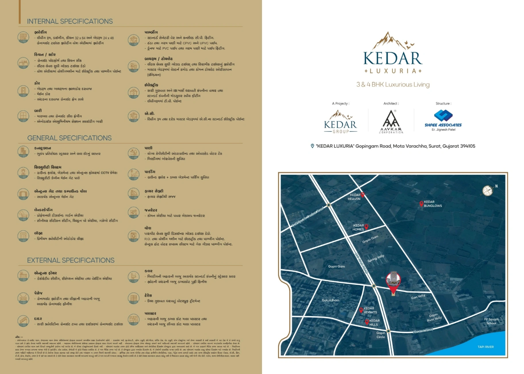 Located at Gopingam Road, Mota Varachha, Surat, Kedar Luxuria offers excellent connectivity to schools 🏫, markets 🛍️, healthcare 🏥, and major road networks—making everyday life easy and convenient.