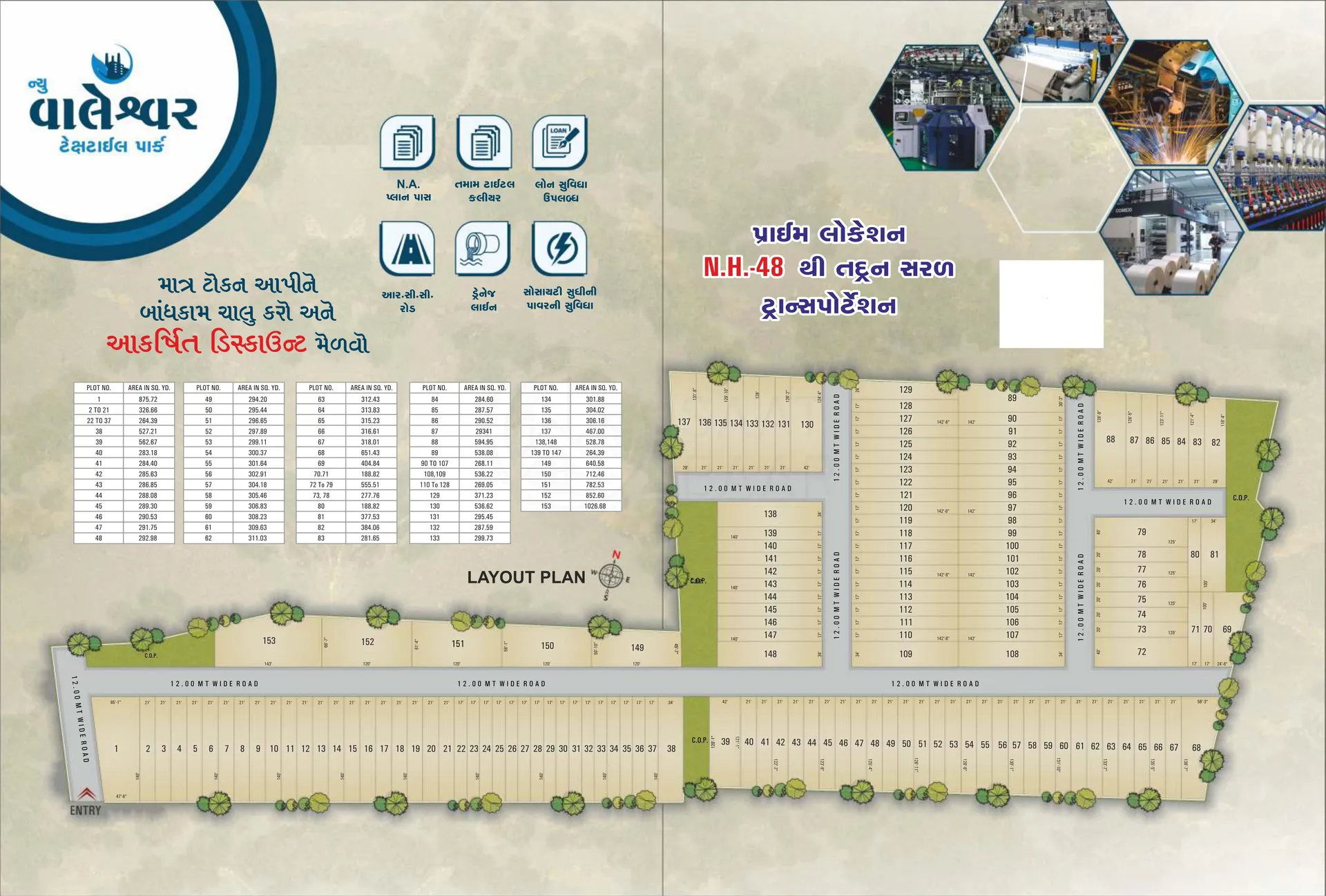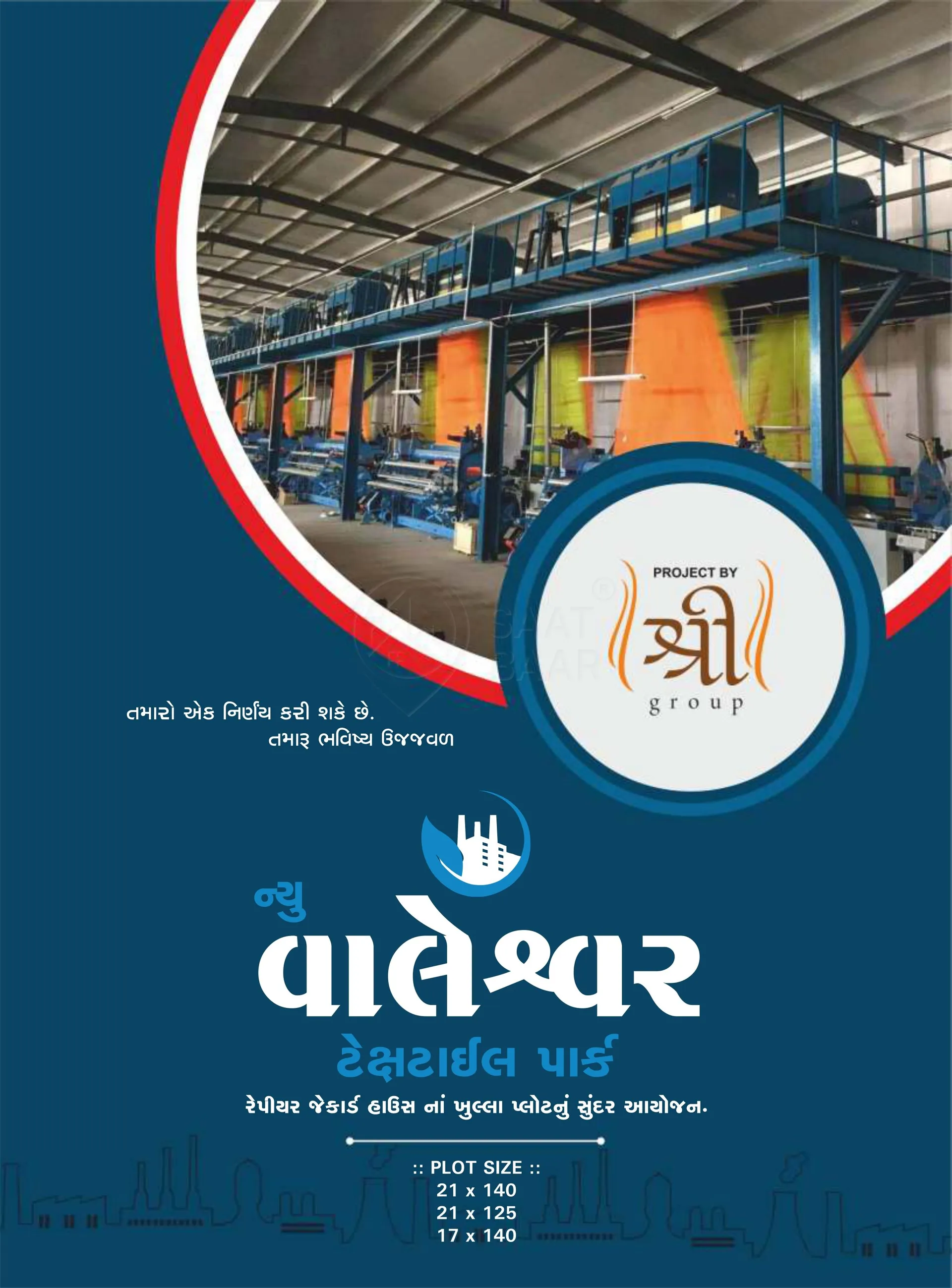 Valeshwar Textile Hub, developed by the reputable Shree Group, presents a prime industrial opportunity in Pipodara, Surat - one of Gujarat's leading textile manufacturing regions. This strategically located hub offers versatile plot sizes of 21x125, 21x140, and 17x140, catering to different business requirements. The development comes with all necessary approvals including NA (Non-Agricultural) plan pass and clear titles, making it a legally secure investment.