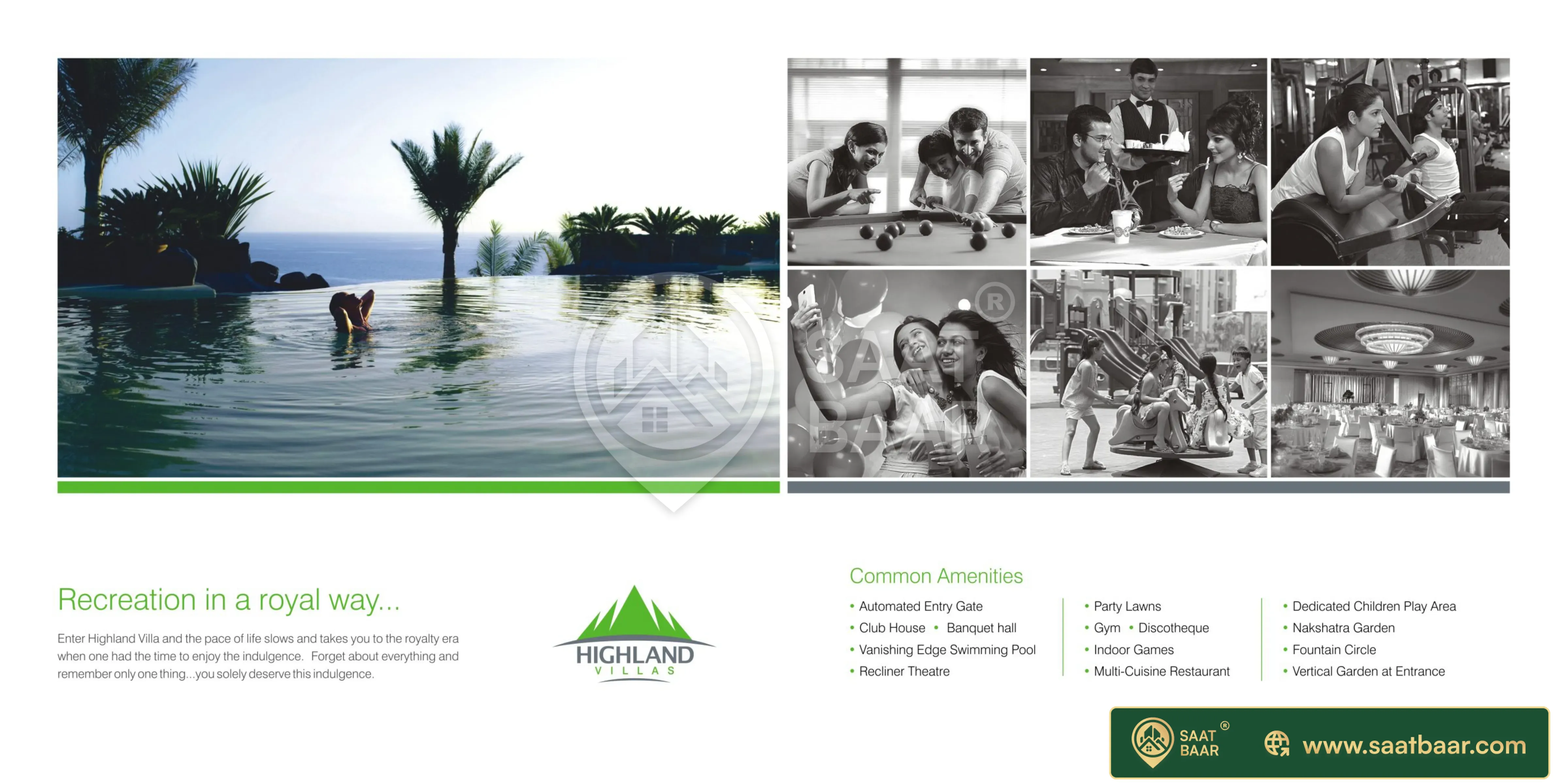 Pegasus Highland Villas Offers an array of world class amenities such as Club House, Gym, Indoor Games, Landscaped Garden, Party Area, Play Area, Security Personnel and Swimming Pool.