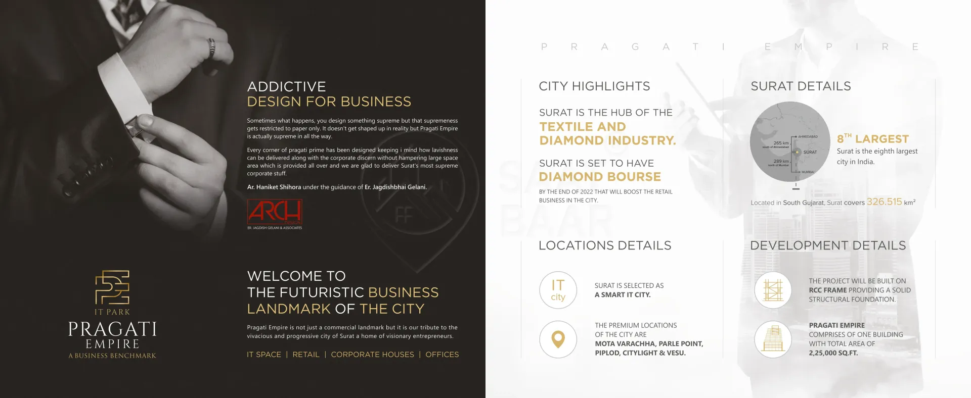 Pragati Empire, located in Surat, is a well-designed building with high standards of safety and quality. It features an earthquake-resistant RCC structure designed according to local seismic zone requirements, ensuring resilience and security. The property is equipped with premium aluminum section windows and high-quality elevators, providing durability and convenience. Amenities include three levels of basement parking, ensuring ample space, as well as a CCTV surveillance system for enhanced security. Additionally, the building has a backup power generator to provide uninterrupted power supply. Pragati Empire combines modern functionality with thoughtful amenities, making it an ideal choice for urban living.