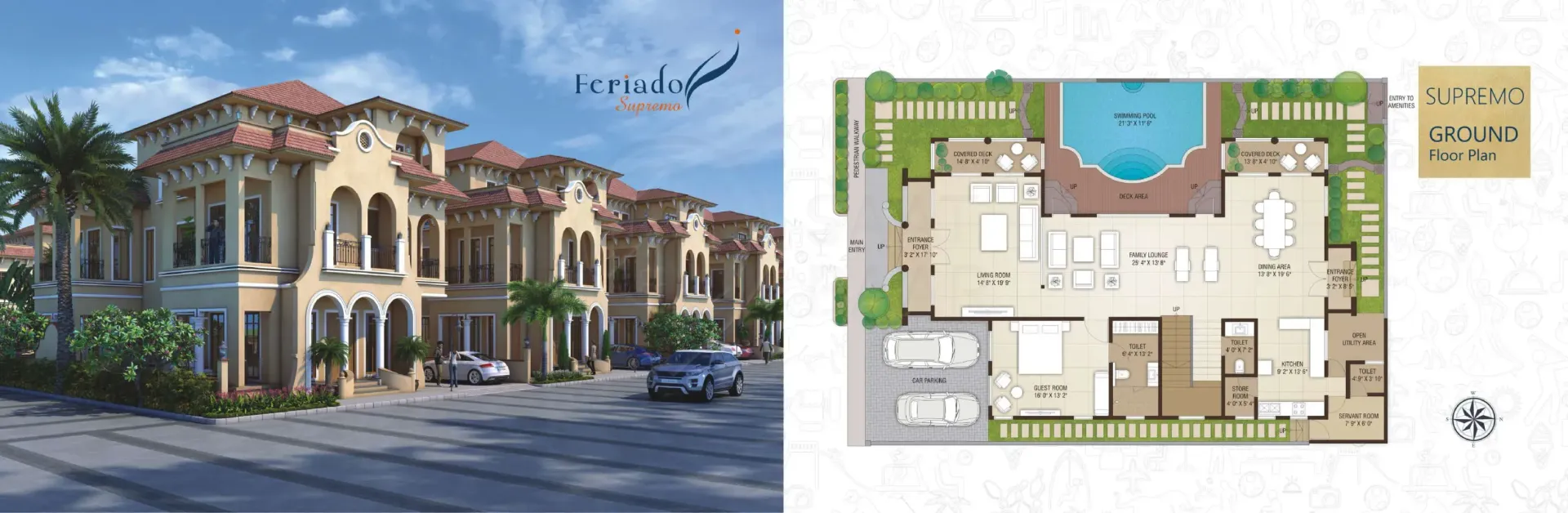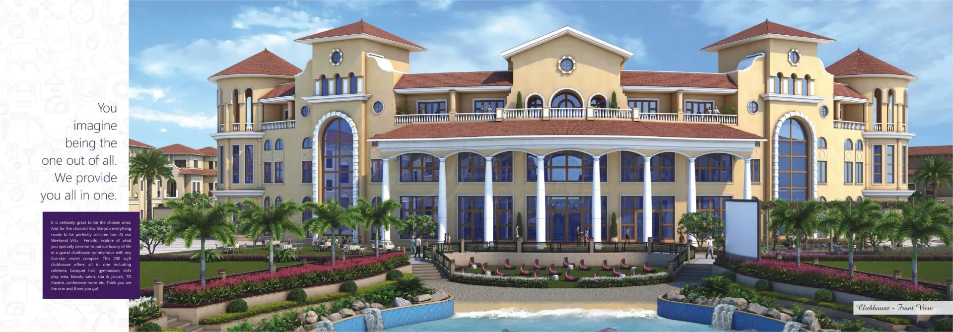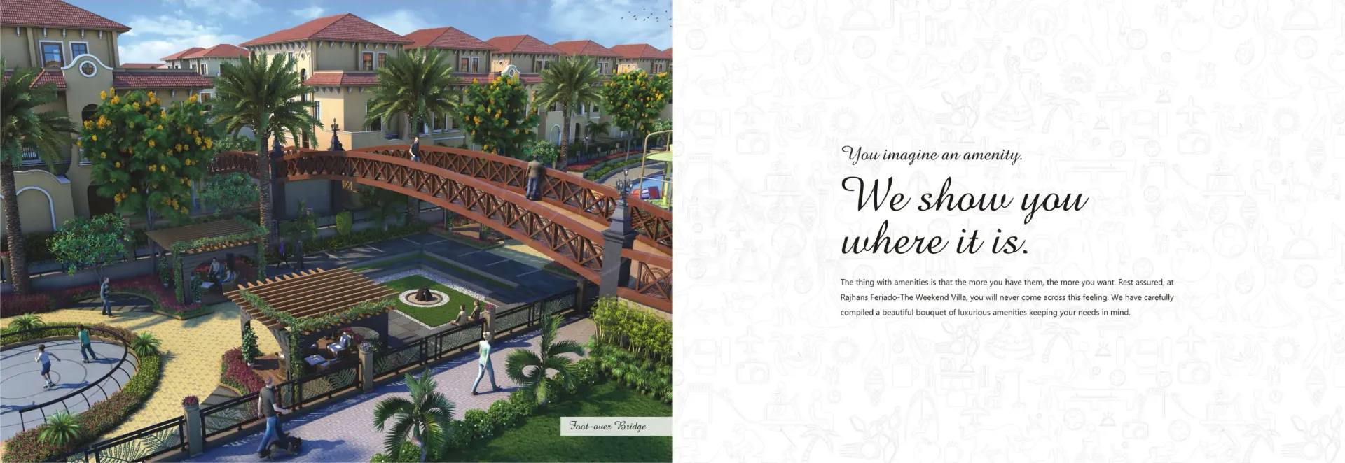 For all those who fancy an extravagant Spanish holiday, the dream comes true right in the prosperous land of Surat. Because it’s ‘Feriado’ calling you! Come, luxuriate in the elegance and essence of Spanish grace beyond your expectations. Magnificently-built with Spanish influence, the ‘Feriado’ Weekend Villas are nestled amidst serene surroundings of Kachhol, Dandi Road accompanied by the lush canopy of trees and green grasslands. These incredible weekend bliss ‘Rajhans Feriado’ brings you three types of villas - Opulento, Supremo and Spazio with awe-inspiring amenities that could even make the Spanish nobles envious. Come, revel in luxury and live a weekend life like never before. Extravagant Weekends. Extraordinary Life.