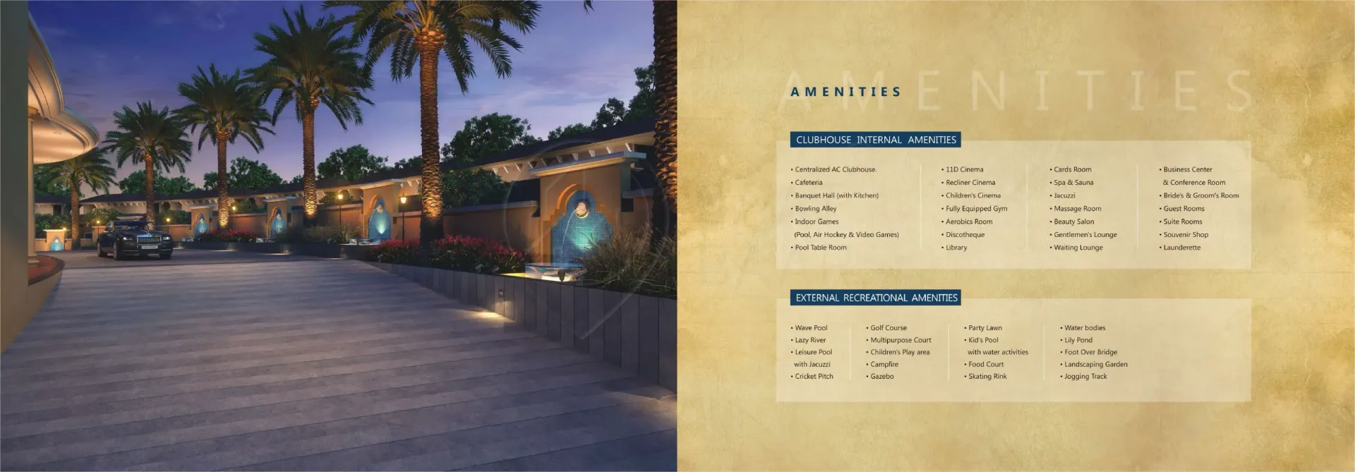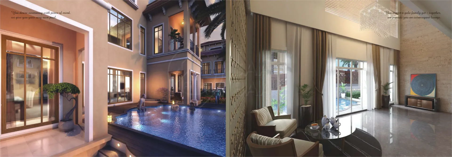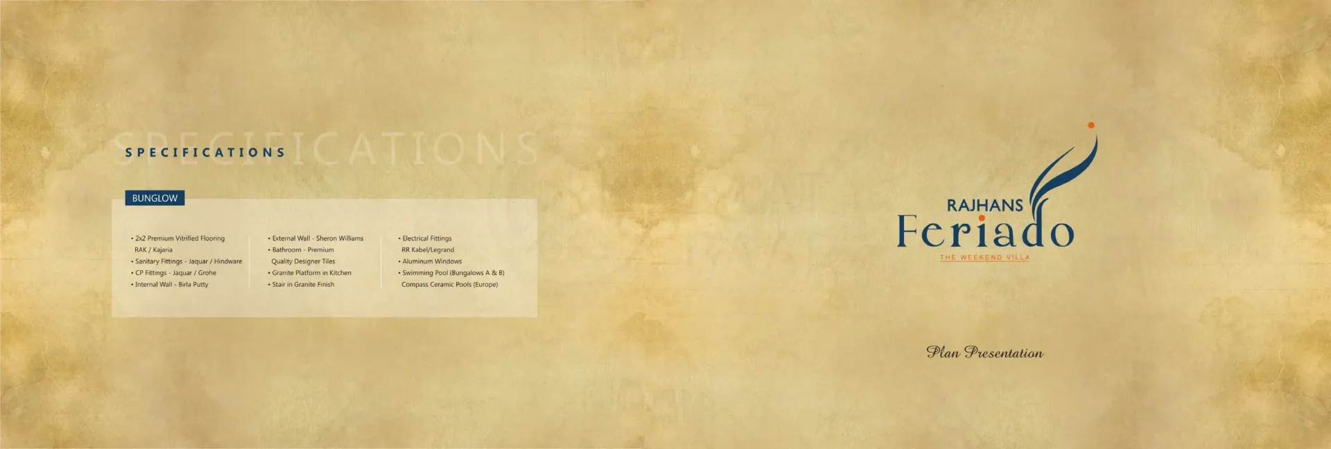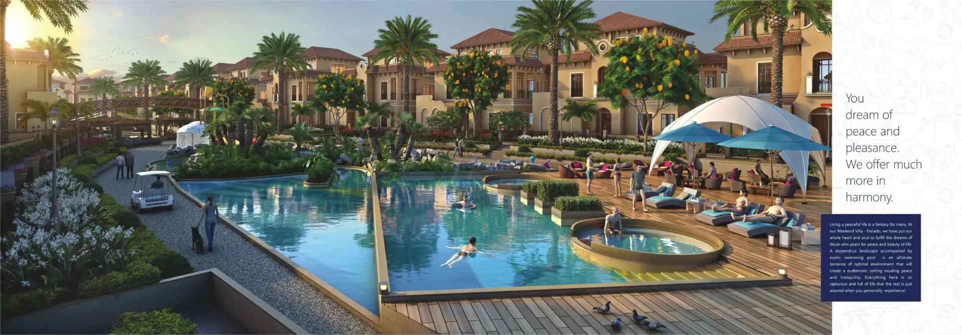 For all those who fancy an extravagant Spanish holiday, the dream comes true right in the prosperous land of Surat. Because it’s ‘Feriado’ calling you! Come, luxuriate in the elegance and essence of Spanish grace beyond your expectations. Magnificently-built with Spanish influence, the ‘Feriado’ Weekend Villas are nestled amidst serene surroundings of Kachhol, Dandi Road accompanied by the lush canopy of trees and green grasslands. These incredible weekend bliss ‘Rajhans Feriado’ brings you three types of villas - Opulento, Supremo and Spazio with awe-inspiring amenities that could even make the Spanish nobles envious. Come, revel in luxury and live a weekend life like never before. Extravagant Weekends. Extraordinary Life.
