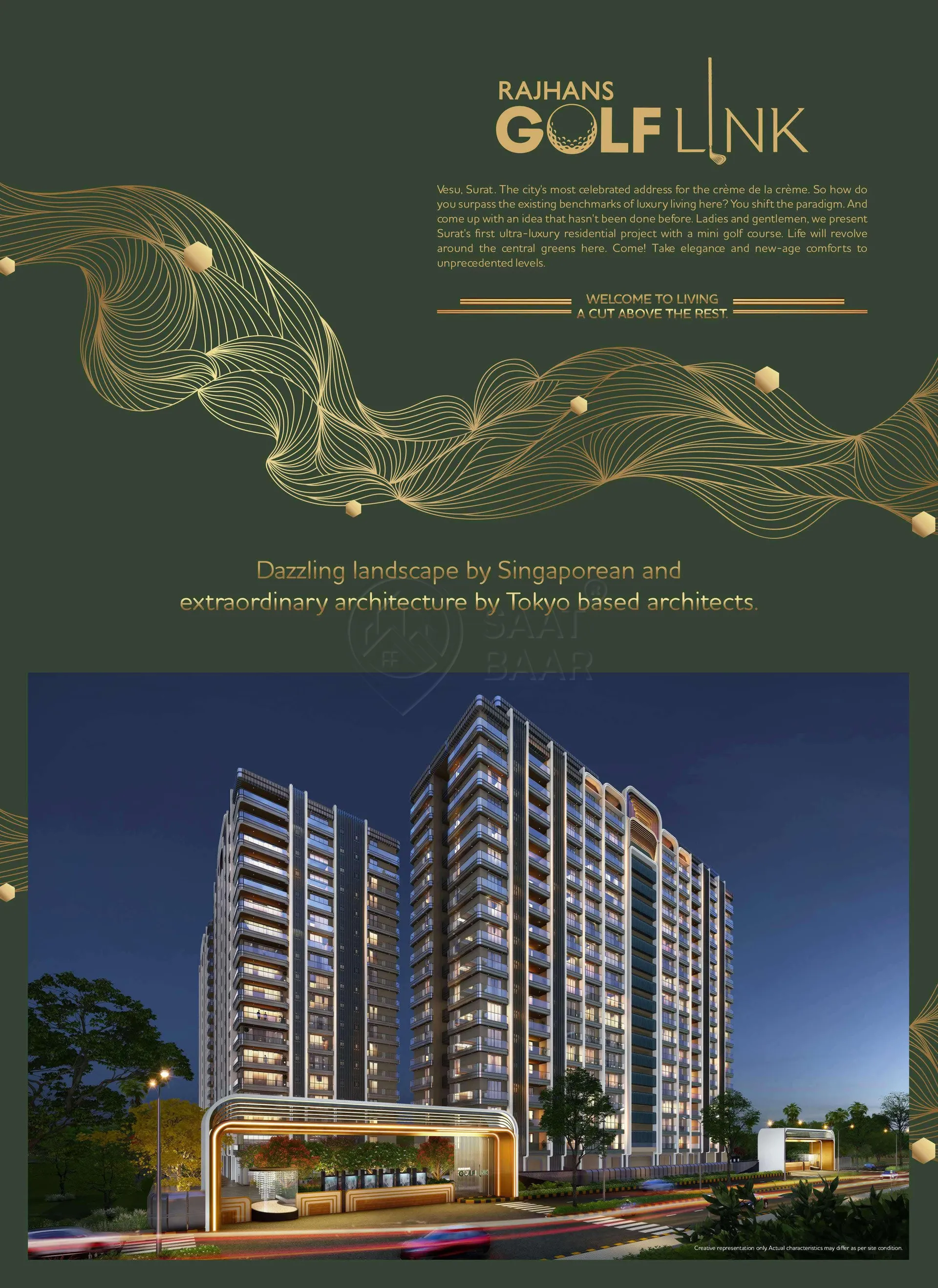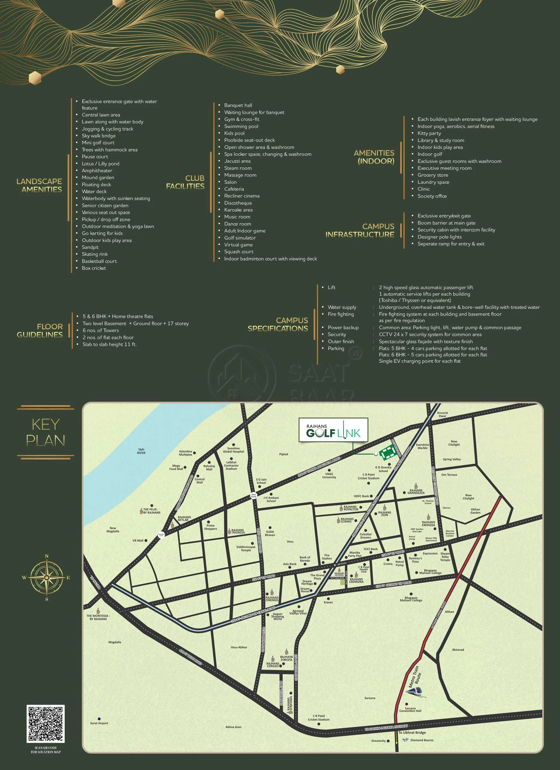 Residential project, Rajhans Golf Link in Surat is offering units for sale in Vesu. The property offers 5 BHK, 6 BHK, 7 BHK units. As per the area plan, units are in the size range of 4036.0 - 10066.0 sq.ft.. The project by Rajhans Group of Industries is set in 6.19 Acres .
