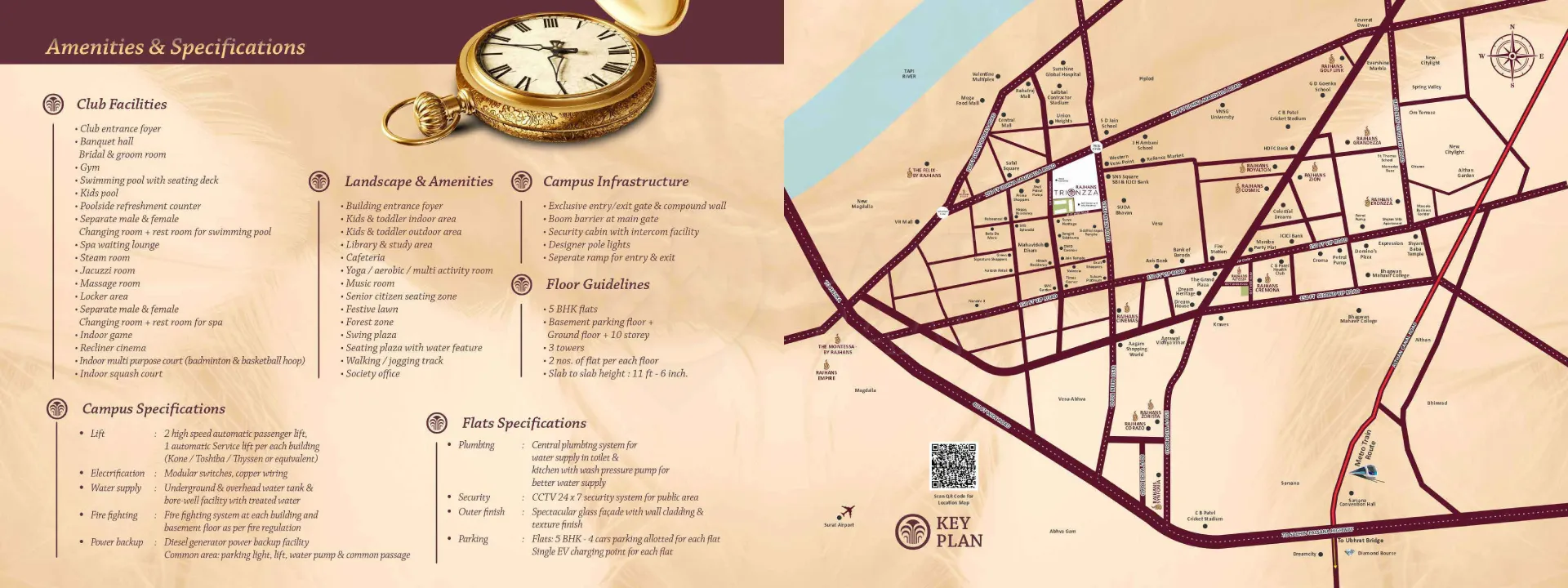 Vesu is well-connected to other parts of city by road, which passes through the heart of this suburb. Prominent shopping malls, movie theatres, school, and hospitals are present in proximity of this residential project.