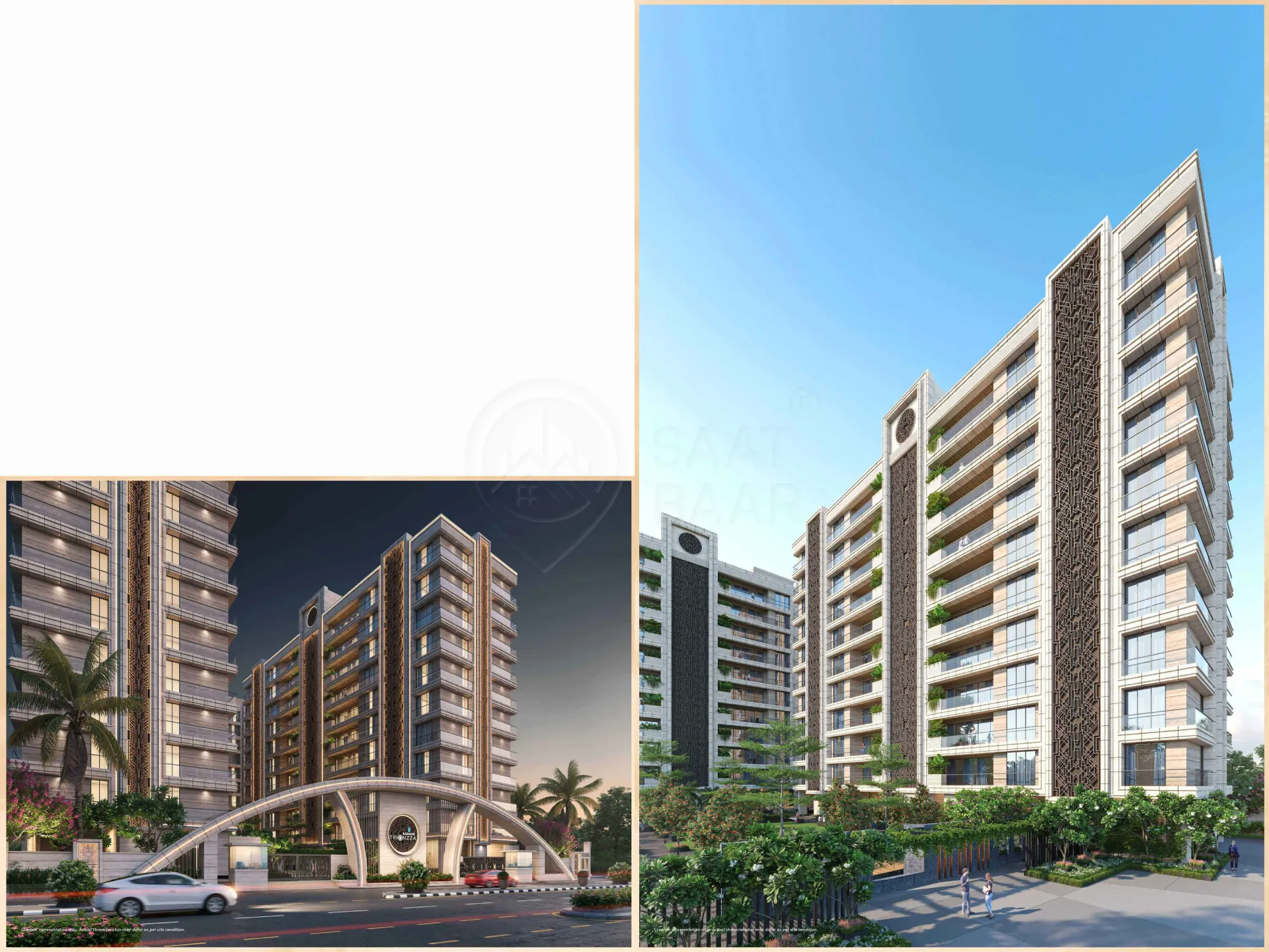 Surat's residential project, Rajhans Infracon Trionzza is offering property for sale. Check out some Apartment. Available configurations include 5 BHK formats in Vesu. It is a Under Construction project by Rajhans Infracon India Pvt Ltd. Rajhans Infracon Trionzza is set in an area of 1.47 Acres and is complete with various modern-day amenities. As per the area plan, units are in the size range of 3363.0 - 4245.0 sq.ft.. Rajhans Infracon Trionzza was launched in March 2023 and possession date is Dec, 2025. There are 60 units in Rajhans Infracon Trionzza. There are 3 buildings. Rajhans Infracon Trionzza is located in Beside Happy Excellencia, Vesu.