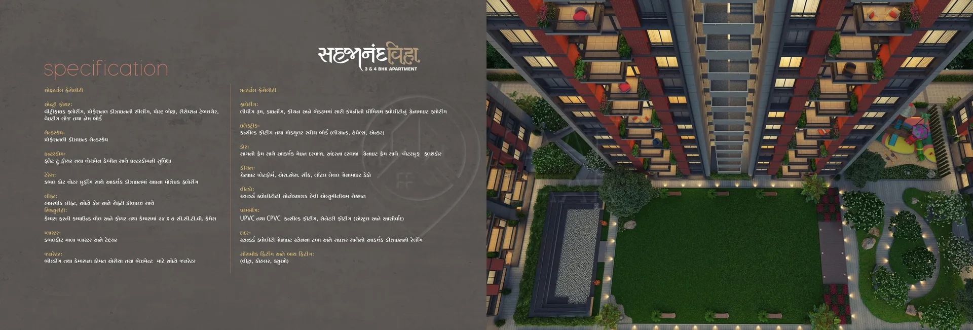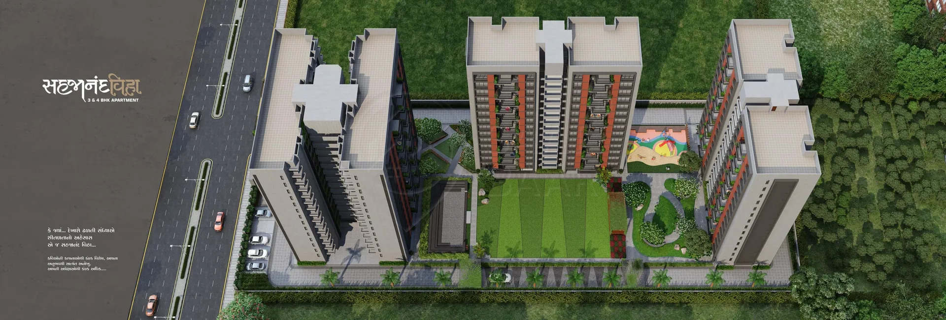 Sahajanand Viha, a residential project by Sahajanand Infraventure, stands as a testament to magnificence and comfort in every aspect. Offering a range of luxurious 3 and 4 BHK units, this project ensures ample facilities and amenities for its residents. The towers are spaciously structured, ensuring good ventilation and a sense of openness.