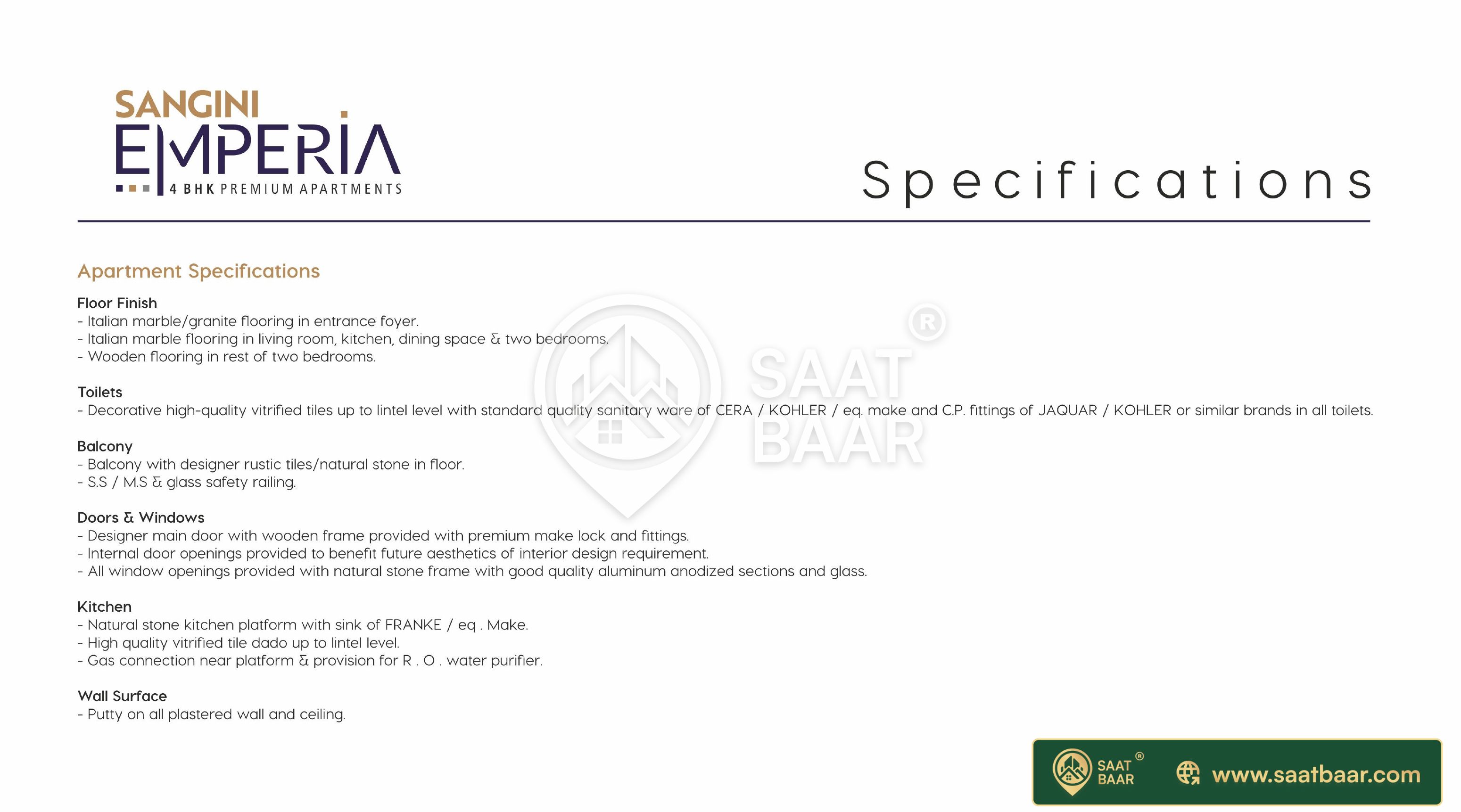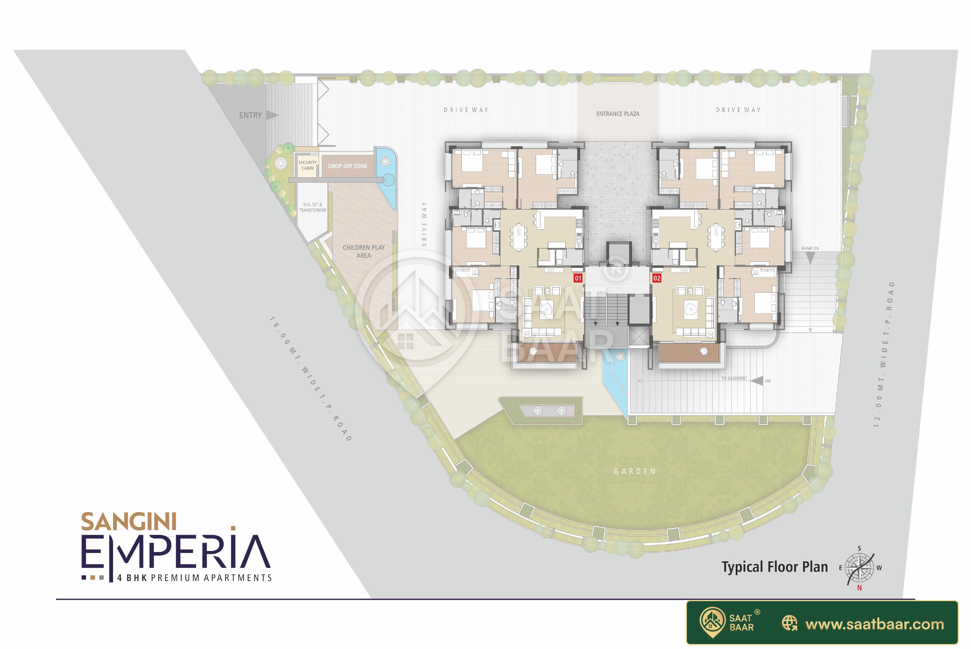 angini Emperia is a project by Sangini Group in Surat. It is a Under Construction project. Sangini Emperia offers some of the most conveniently designed Apartment. Located in Rander, it is a residential project. The project is spread over 0.49 Acres. It has 24 units. There is 1 building in this project. Sangini Emperia offers some of the most exclusive 4 BHK. As per the area plan, units are in the size of 2169.0 sq.ft.. The address of Sangini Emperia is Opp. Get Co Substation, Zainab Hospital Road, Adajan.