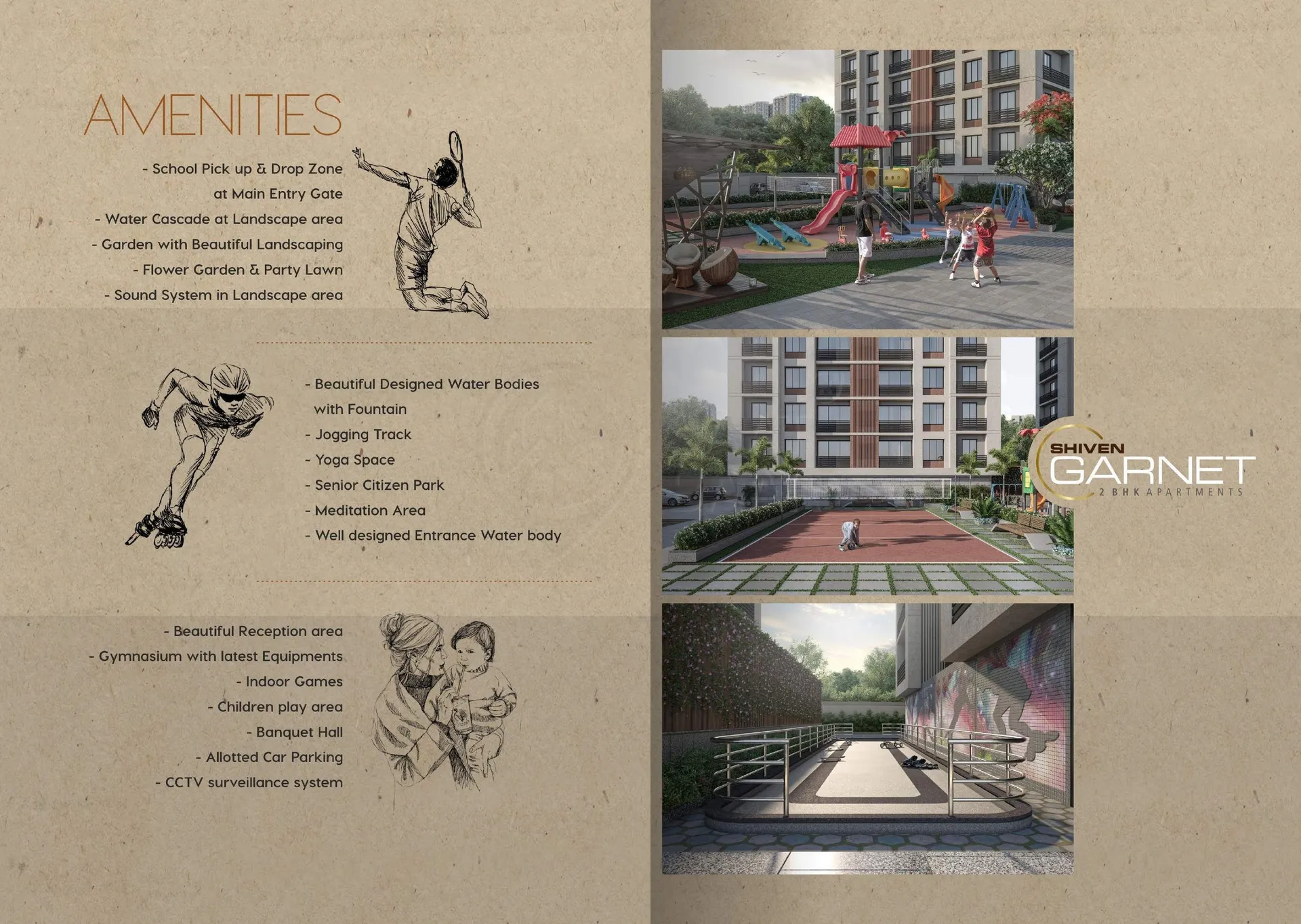 Shiven Garnet is not just about living spaces; it's about crafting an experience. The project boasts a range of amenities designed to cater to the needs and desires of modern residents. A water cascade in the landscape area, a flower garden, and a party lawn provide serene spots for relaxation and social gatherings. For fitness enthusiasts, a gymnasium equipped with the latest equipment awaits, while a banquet hall provides space for special occasions. With allotted car parking, convenience is ensured at every turn.