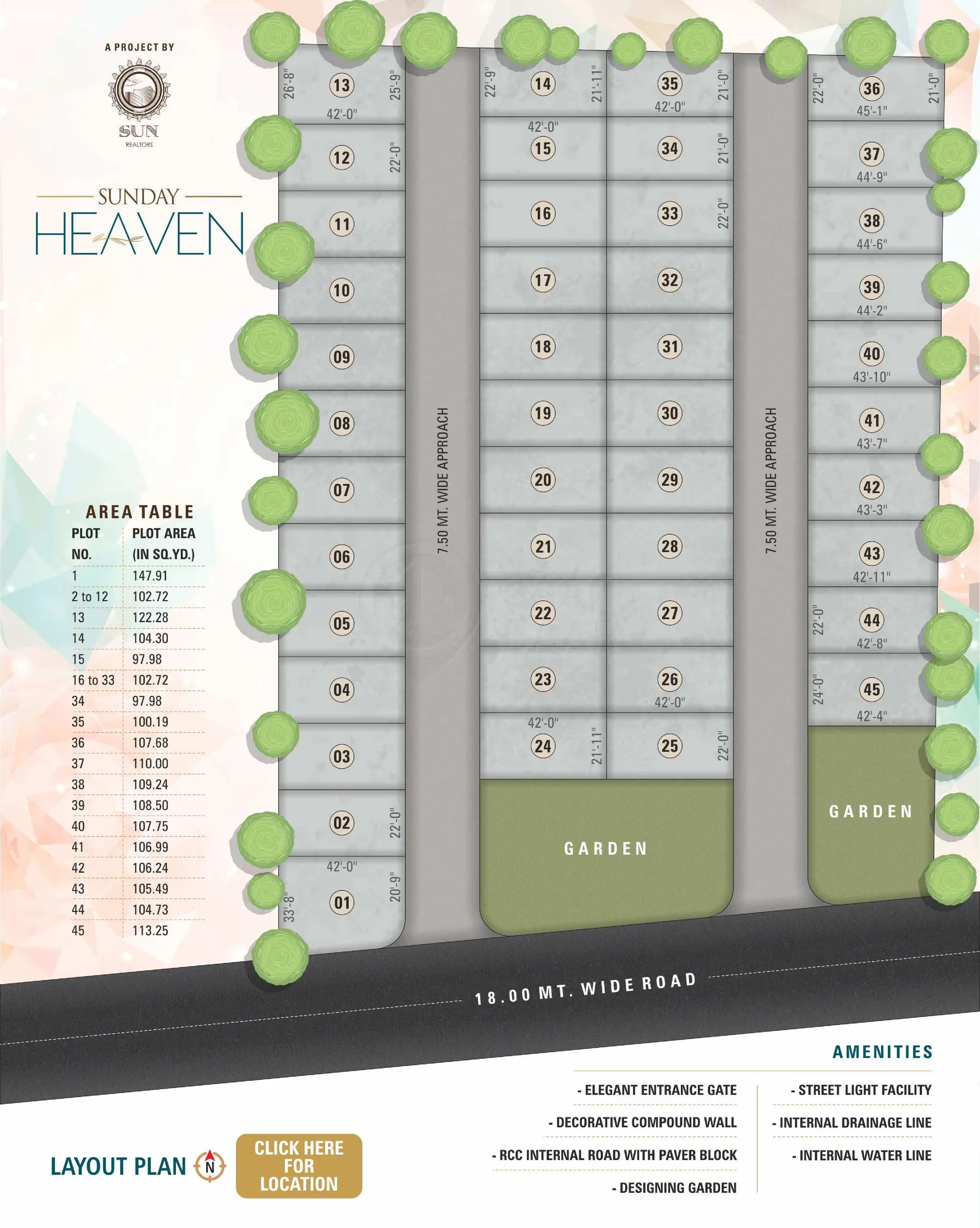 Sunday Heaven Open Plots Industry Park, located in Surat, offers 45 open plots with essential amenities tailored for industrial development. The park features an internal drainage system, a well-designed entry gate, a decorative compound wall, RCC internal roads with paver blocks, and street lighting to ensure a well-structured and functional environment. Its modern infrastructure and strategic location make it an attractive option for businesses looking to establish industrial operations