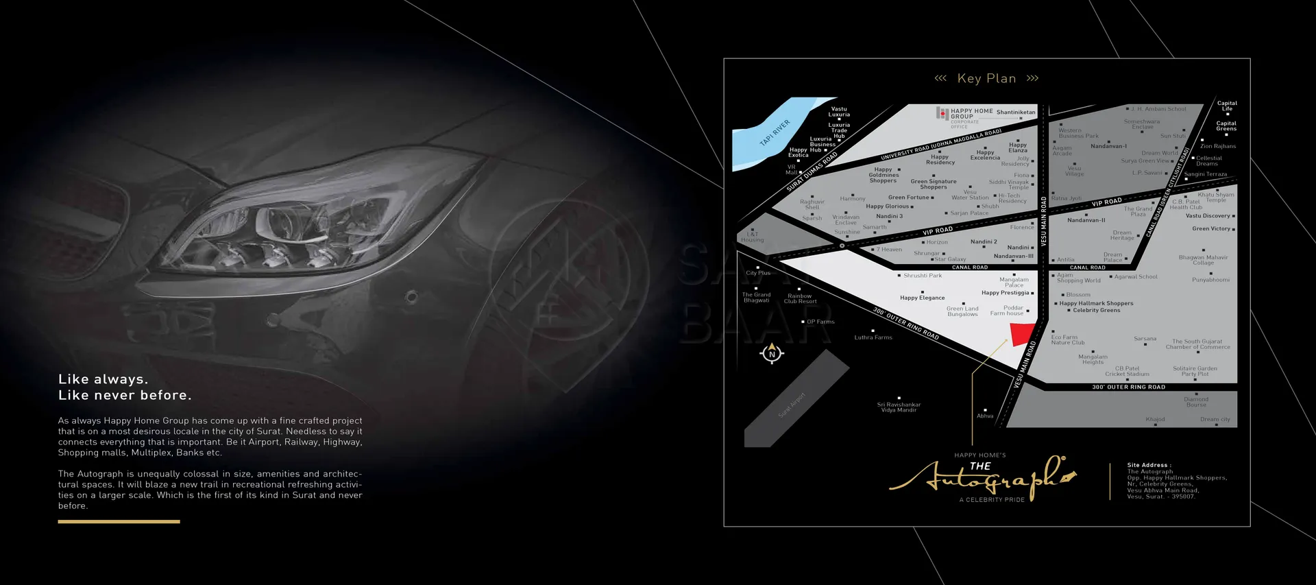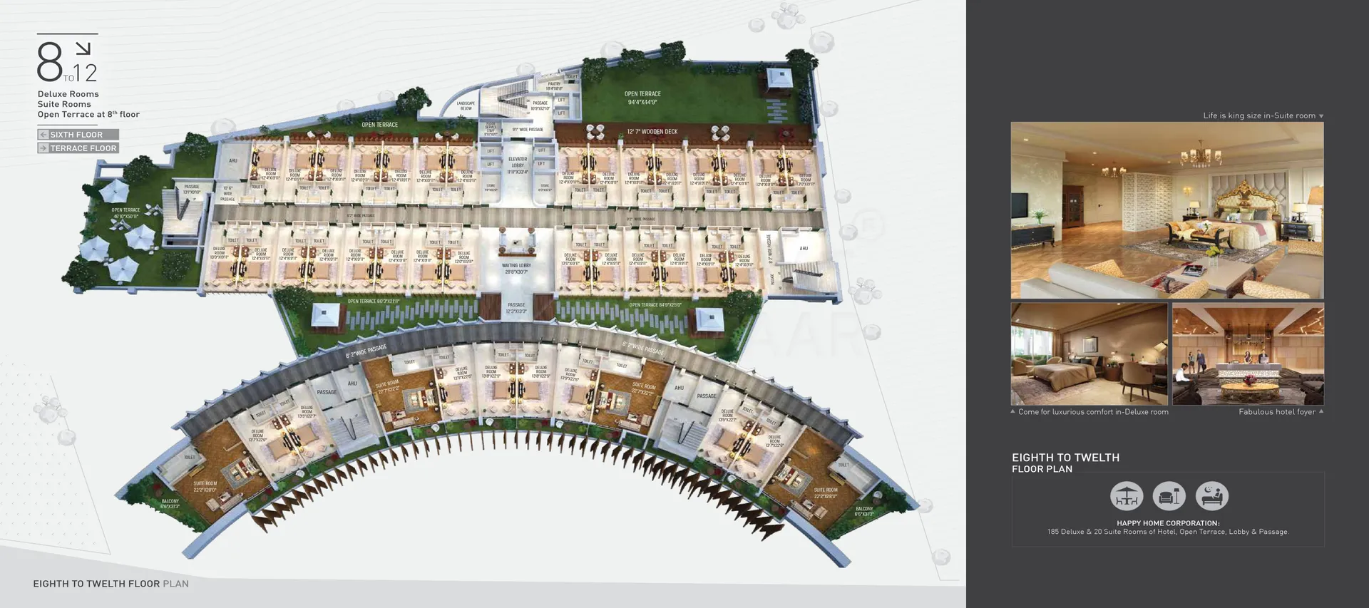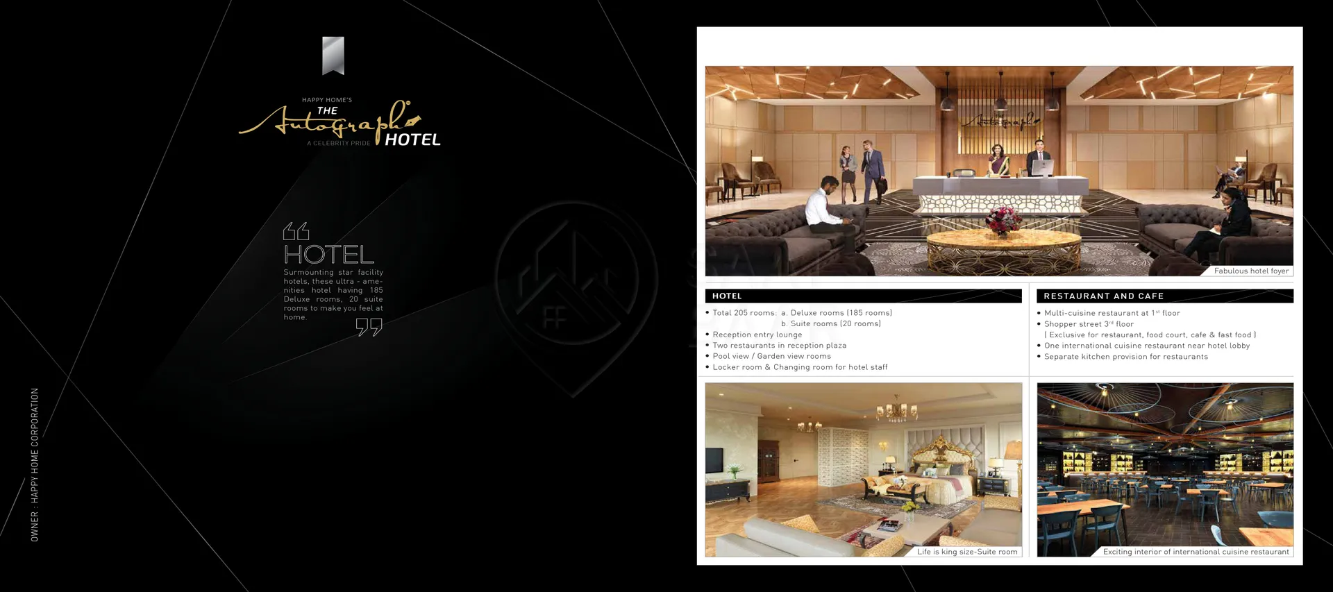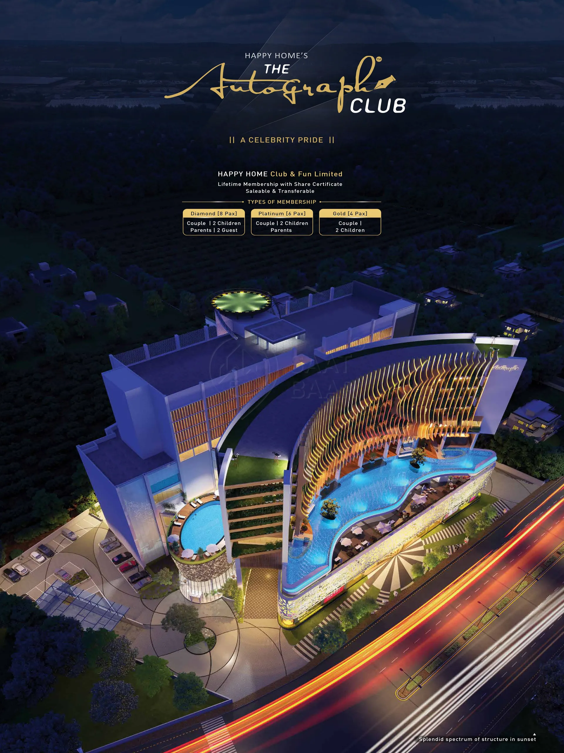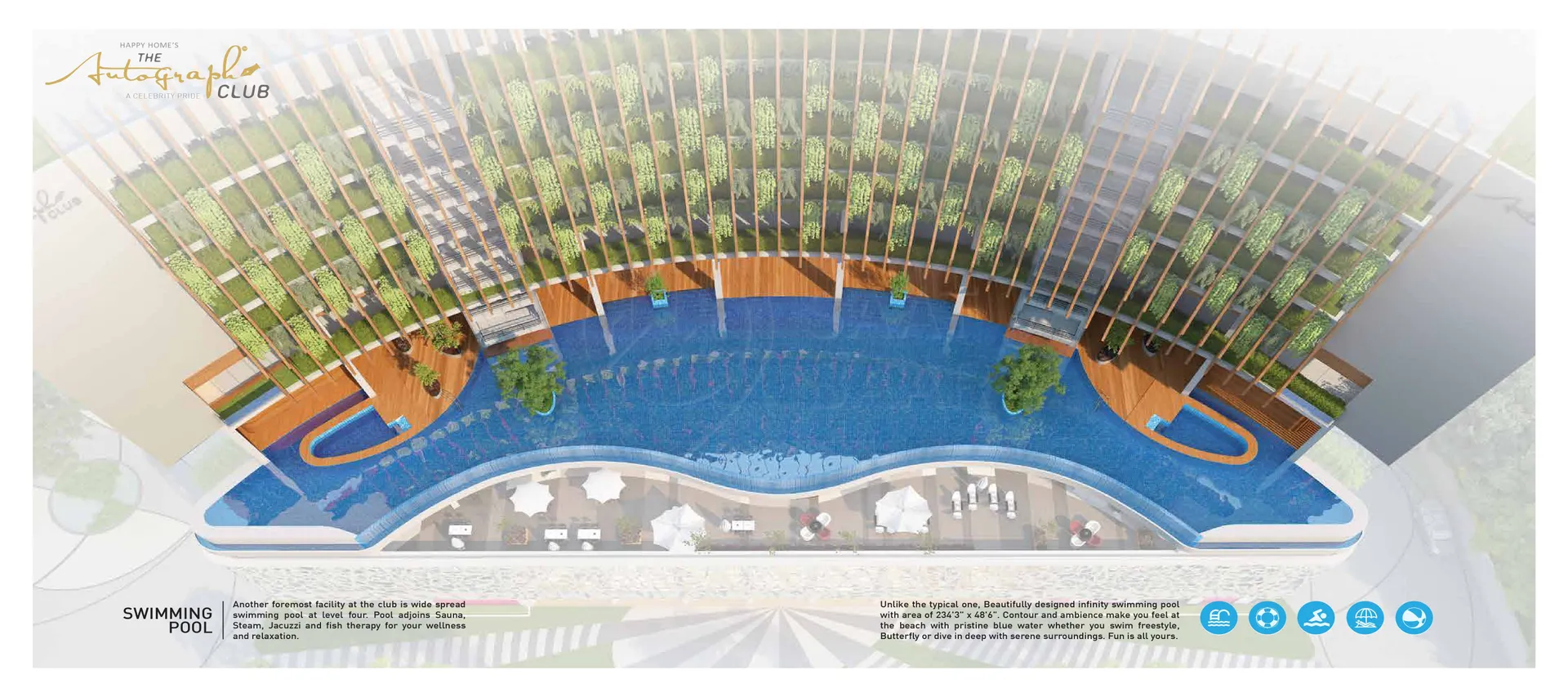 The Autograph Club by Happy Homes is a luxurious RERA-registered project featuring a 12-story marvel designed to redefine modern living. It offers an array of world-class facilities, including a food court, e-library, tennis court, auditorium, and a lavish club lobby. Residents can indulge in multiple pools—separate for ladies and kids, covered options, and a scenic deck. Wellness amenities include a gym, yoga and meditation zones, aerobics and spinning studios, steam, sauna, and fish therapy. Recreational highlights like ice skating, a kids’ gym, and a café complement deluxe offerings such as 185 deluxe rooms, 20 suite rooms, and an open terrace for relaxation. Perfectly blending comfort and sophistication, this development promises an unmatched lifestyle experience.