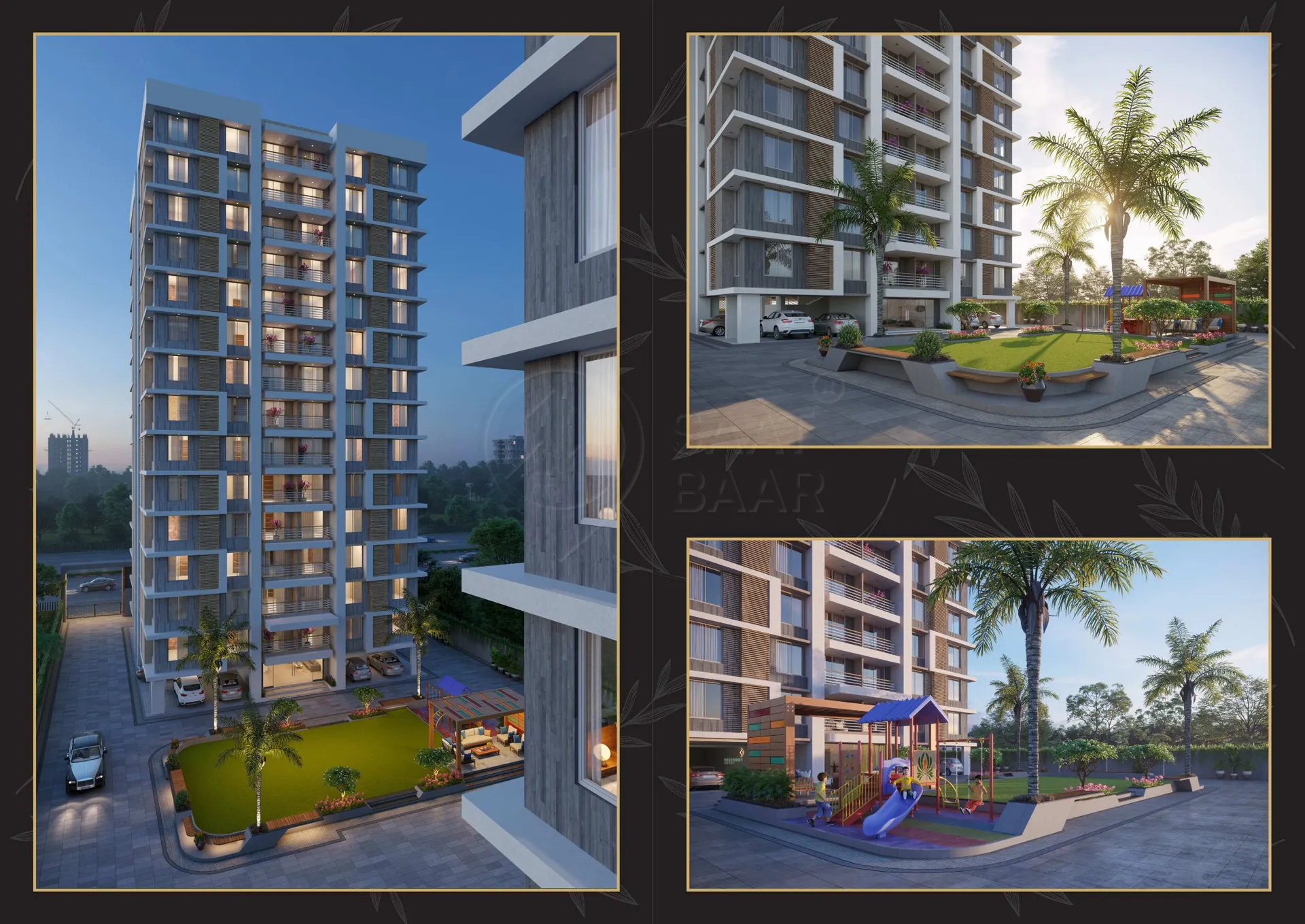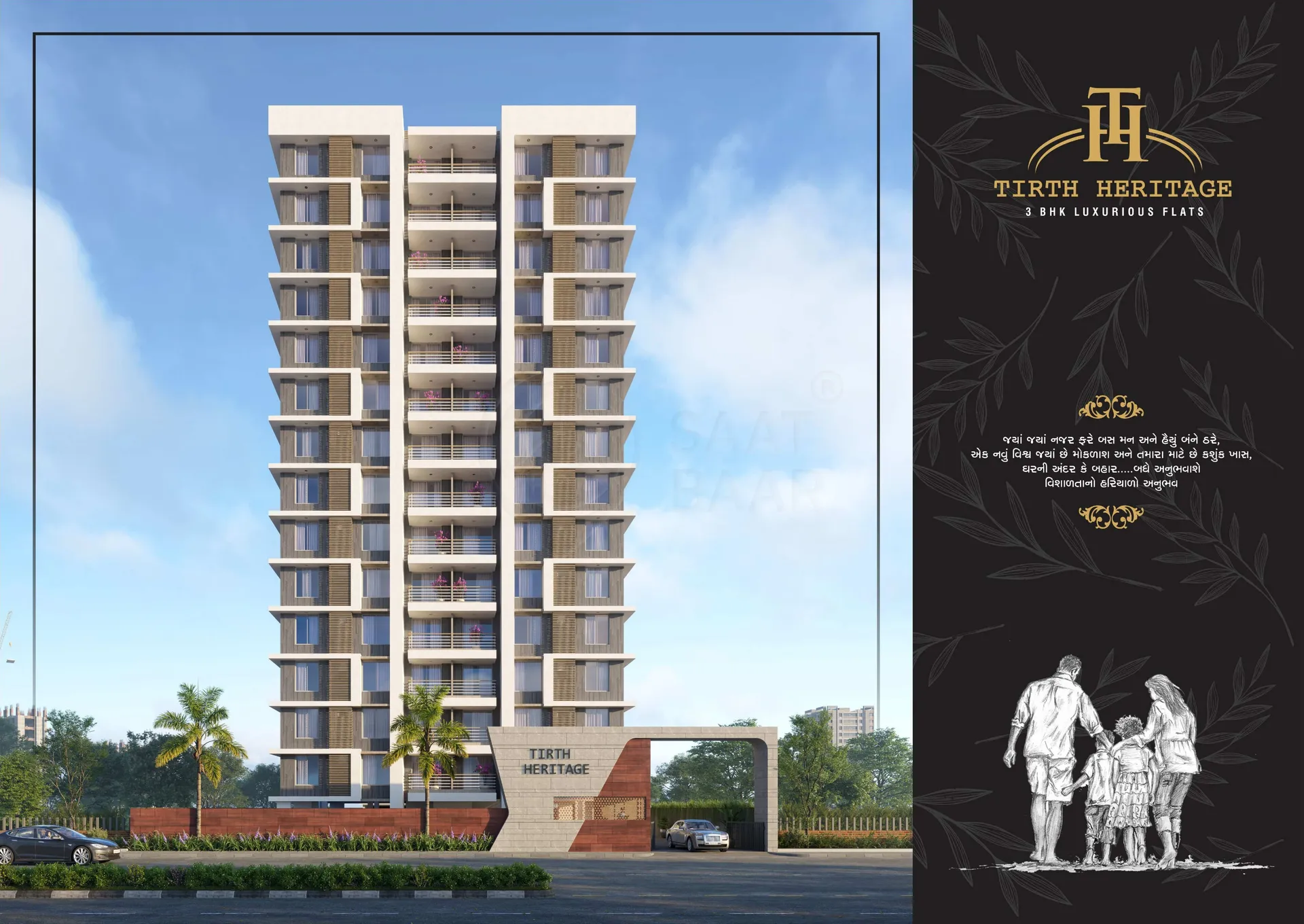 Tirth Heritage, located in Surat, offers luxurious 3BHK flats designed with elegant flooring and modern aesthetics. The project provides top-notch amenities, including double parking facilities for residents, ensuring convenience. The entrance boasts a beautifully designed reception foyer, complemented by a peaceful waiting area for visitors. For families, there’s a well-maintained children’s play area, making it ideal for kids to enjoy in a safe environment. The serene and secure surroundings enhance the living experience, making Tirth Heritage a perfect blend of luxury, comfort, and functionality for urban living. TP68,FP230,SUBPLOT-230,
