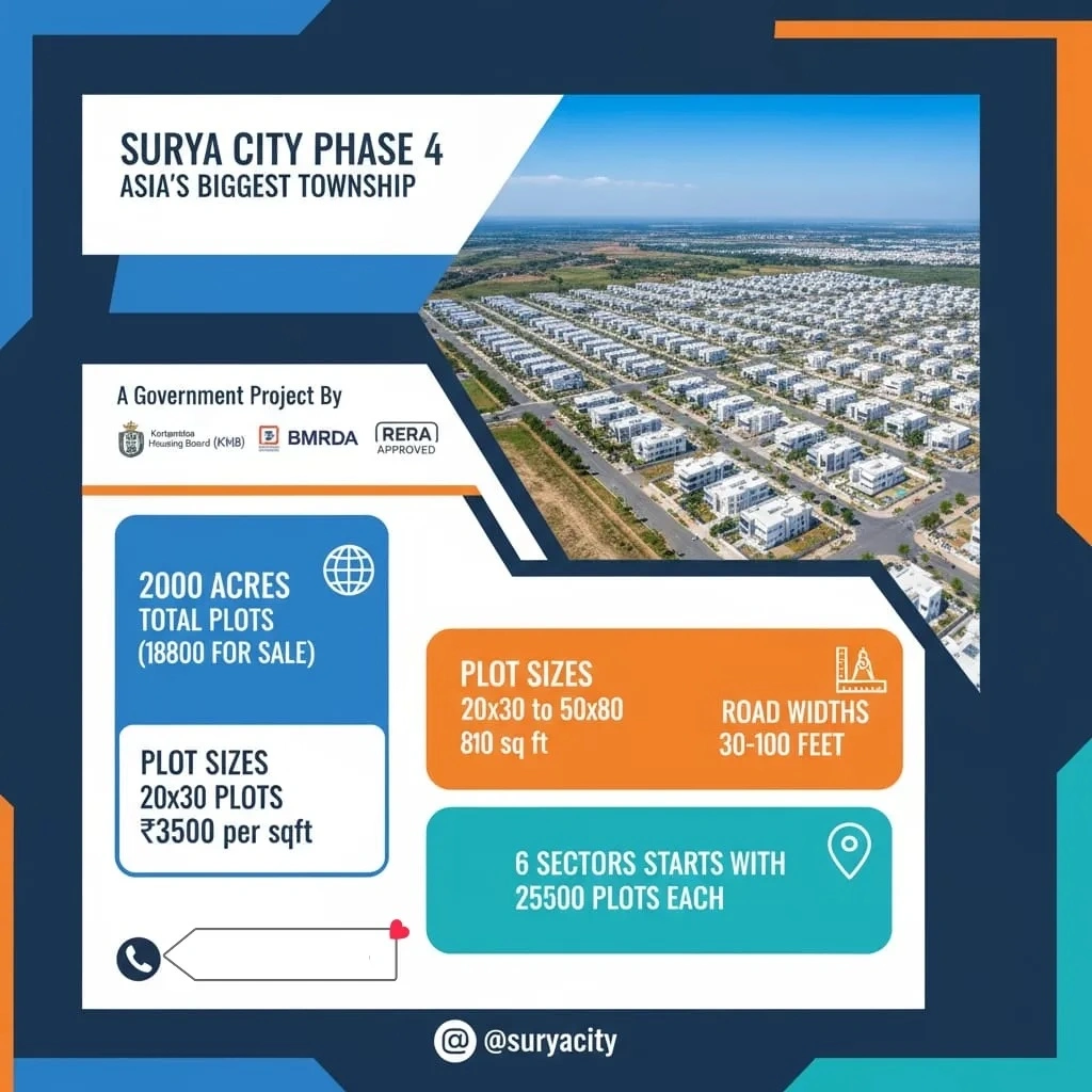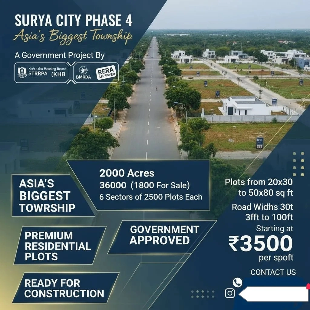 *๐Assets square ๐* ๐ *KARNATAKA HOUSING BOARD (Land Owner Share)* โก *AT : - Jigani OTIS Circle ,Surya City Phase-4 , Bangalore* โก ๐ย *TOTAL 3000+ PLOTS* *โย STRRPA APPROVED [KHB]* *โย A KATHA* ๐ฅ *Offer price : 3500/- Per Sqft* *๐ BOOKING AMOUNT* *๐ 2,00,000/- RUPEES* *๐๏ธ PLOT DIMENSIONS* *20*30 - 600* *20*40 - 800* *30*40 - 1200* *30*50 - 1500* *40*60 - 2400* *50*80 - 4000* *Odd sites And above* ๐ *AMENITIES* ๐ณ๏ธ *Drainage System* ๐ง *Sewage* ๐ *Cauvery Water Supply From Overhead Tanks* ๐ฎ๐ปโโ๏ธ *24/7 Security* ๐ฃ๏ธ *Wide blacktop roads (40โ, 50โ, 60โ, 80โ, 100)* โก *Street lighting Throughout The layout* โฉ๏ธ *Gated Community Grand Entrance Arch* *๐ Ready to construction* *๐ Childrenโs play area & well-maintained parks* *๐ 60-acre sports club (indoor & outdoor activities)* *๐ ELECTRICITY* *๐ Gated Community* ๐ฅ *HIGHLIGHTS* ๐ฅ *Mall's* *๐ Royal Meenakshi Mall* *๐ Vega Mall* ๐ฉ๐ปโ๐ซ *EDUCATIONAL INSTITUTES* ๐ซ *Christ Academy* ๐ซ *Radcliffe School* ๐ซ *Delhi Public School* ๐ซ *Candor International School* ๐ซ *BGS National Public School* ๐ซ *Sri Chaitanya Techno School* ๐ซ *Presidency School* ๐จ๐ปโโ๏ธ *HEALTH CARE* ๐ฅ *Apollo & Fortis Hospital* ๐ฅ *Jayavadeva Hospital* ๐ฅ *Vijayashree Hospitals* ๐ฅ *Green View Medical Center* ๐ฅ *Narayana Hrudayalaya* ๐ฅ *Vivekananda Yoga University* ๐ฉ๐ปโ๐ป *MNC & Industries Around* ๐ญ *HCL* ๐ญ *Volvo* ๐ญ *SKF Bearings* ๐ญ *Mercedes Benz* ๐ญ *Toyota Kirloskar* ๐ญ *Micro Labs* ๐ญ *Granite Hub* โก *CONNECTIVITY* โก *๐ 5 mins - Jigani Industrial Area* *๐ 5 mins - Otis Elevator* *๐ 15 mins -Bommasandra Industrial Area* *๐ 15 mins - Bannerughatta* *๐ 20 mins -Electronic City* ๐๐จ๐ฅ๐ฅ๐ฌ ๐จ๐ฃ! ๐ฅณ *FOR MORE _INFORMATION_ CONTACT Rahul