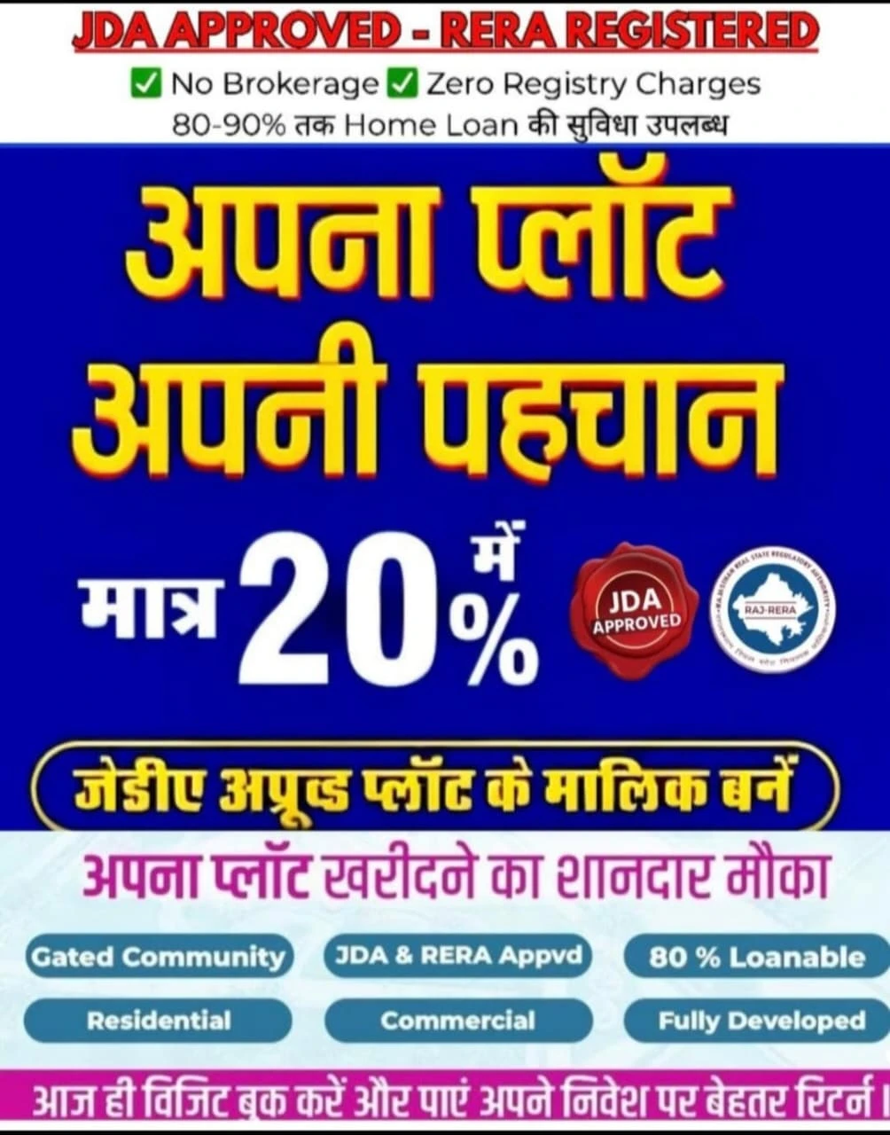 ๐ก Own Your Plot in Jaipurโs Fastest-Growing Township Looking for a safe land investment with high future returns? โ Approved township โ Prime Jaipur locality โ Clear title & legal security โ Ideal for home & investment ๐ Limited plots available ๐ Book a site visit today! ๐ Message us on WhatsApp now