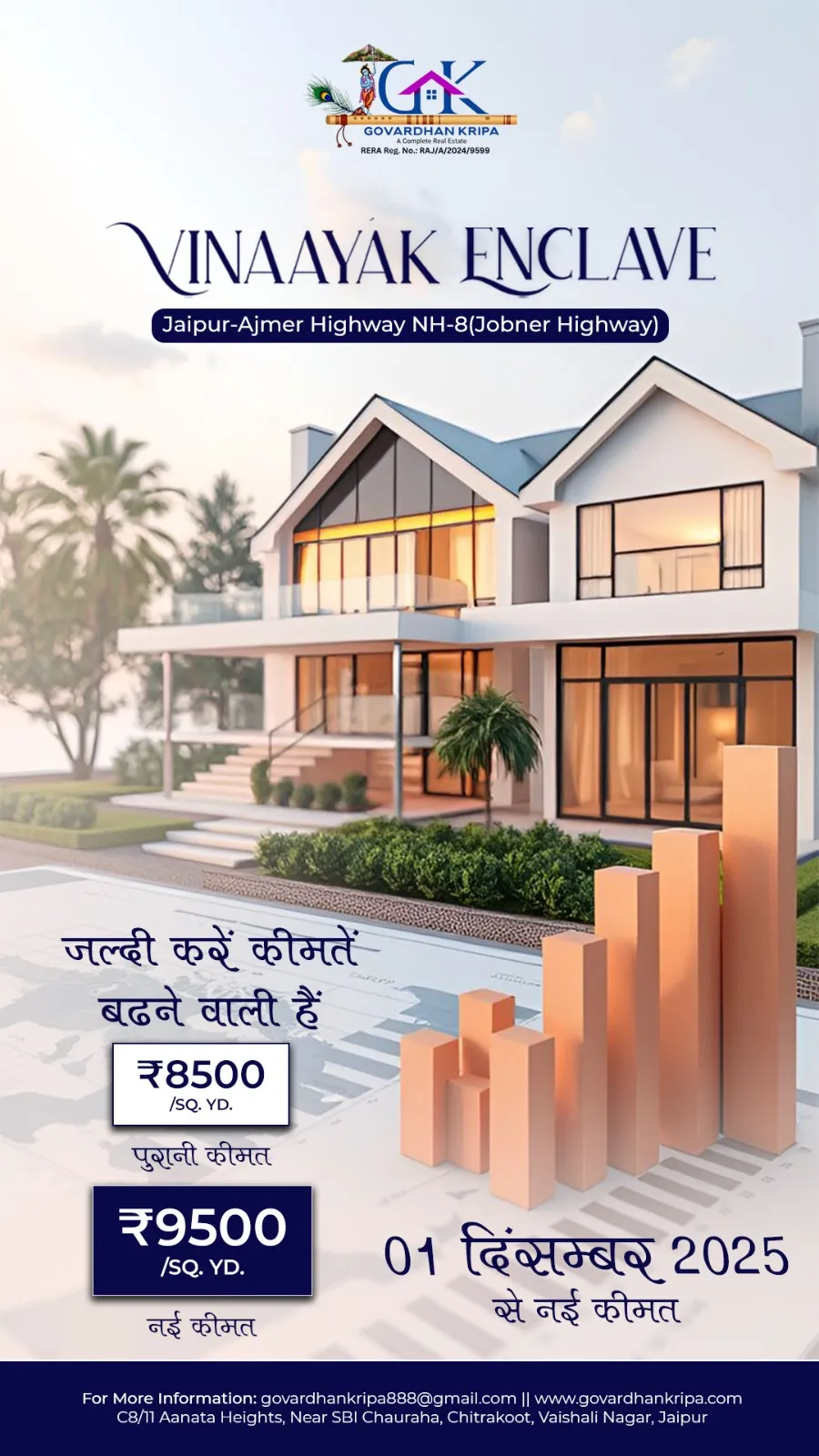 VINAYAK ENCLAVE Approved Premium Township – Mahla, Jobner Highway महला ज्योति विद्यापीठ विश्वविद्यालय से मात्र 5-7 मिनट की दूरी पर 70 बीघा की Ultra Modern Approved Township में सिर्फ ₹9,500/- प्रति वर्ग गज में अपना सपना सच करें ✨ 🌟 Why Vinayak Enclave? 🏊 Club House & Swimming Pool Lifestyle 🛣️ 60ft Main Entrance Road 40ft Internal Roads 🌳 Green Park & Kids Zone 💡 Street Lights | Sewerage | Water Supply 🔐 Gated Security System 🏦 Easy Loan Facility Available 📍 Prime Location – Mahla, Jobner Highway Limited Inventory — Premium Future Growth Zone 📞 Call Now & Book Your Dream Plot Today