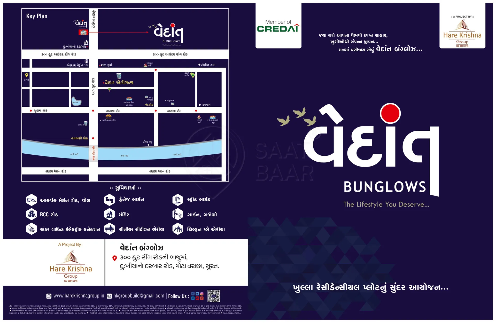 Vedant Bungalows is a premium residential project developed by Hare Krishna Group in Mota Varachha, Surat. Spanning 3.7 acres, this RERA-registered project features 121 well-planned plots. The development boasts modern amenities, including RCC roads, a children's play area, a temple, and a dedicated security cabin. For enhanced safety, the project includes fire safety systems and CCTV surveillance. Additional features such as a gas pipeline ensure convenience for residents. Thoughtfully designed, Vedant Bungalows offers a serene and secure environment for families. Its strategic location and comprehensive facilities make it an ideal choice for contemporary living.